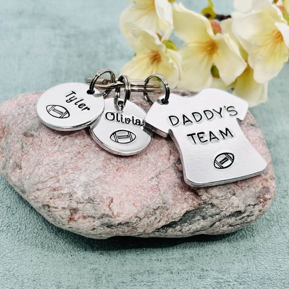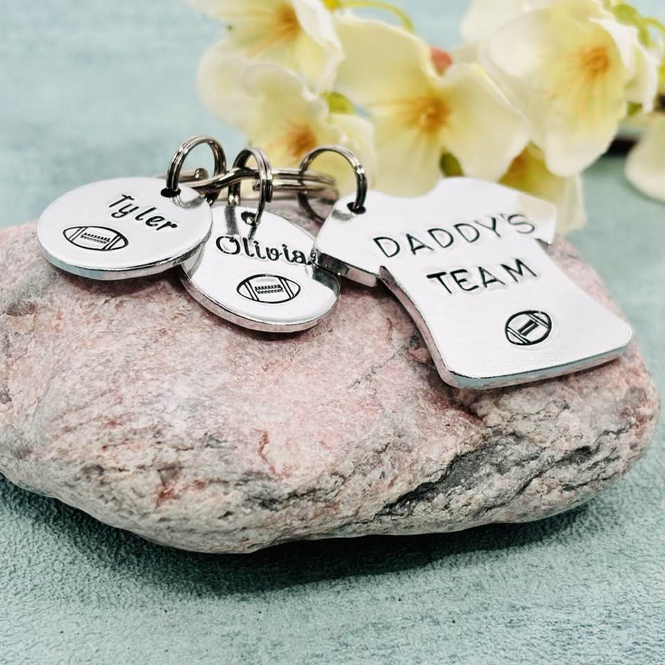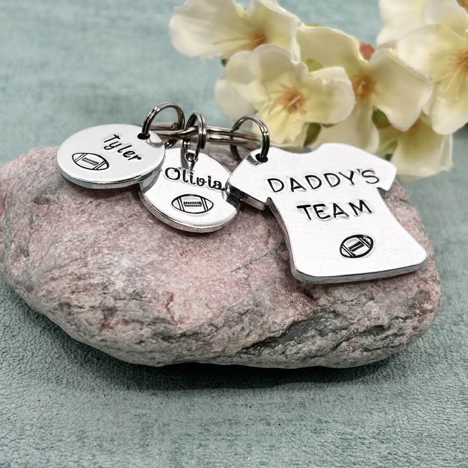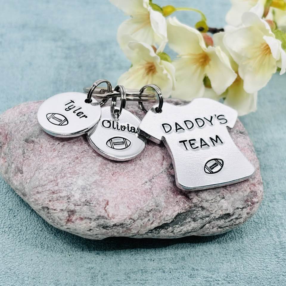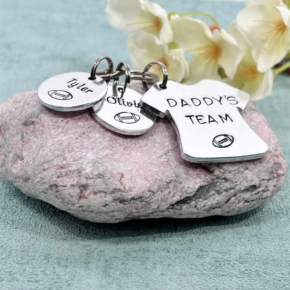 Hand stamped 'Daddy's Team' personalised keyring makes an ideal gift for every rugby player or rugby lover.