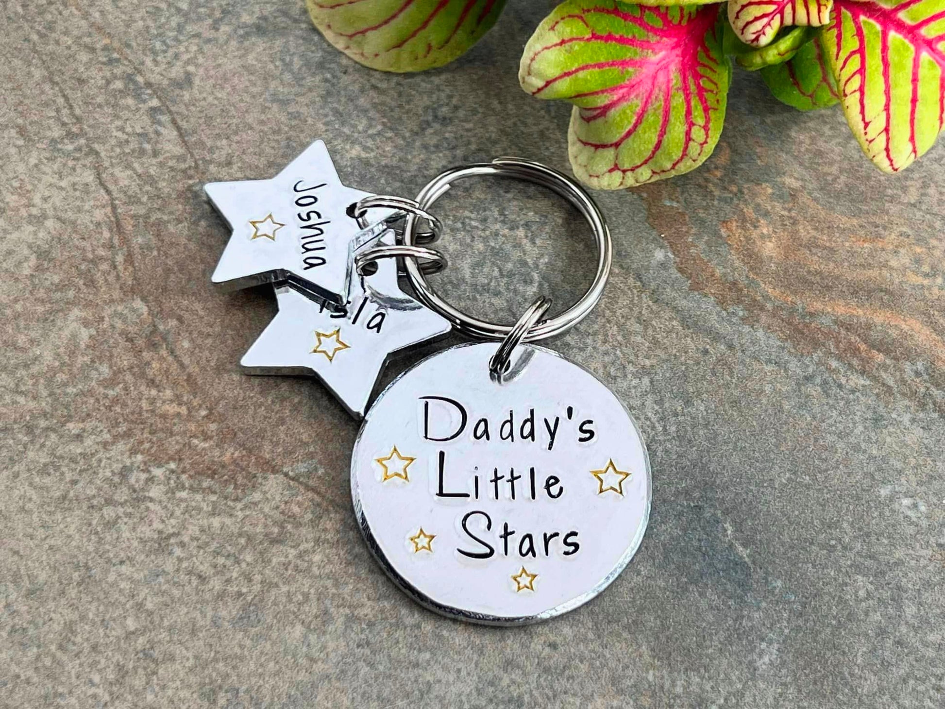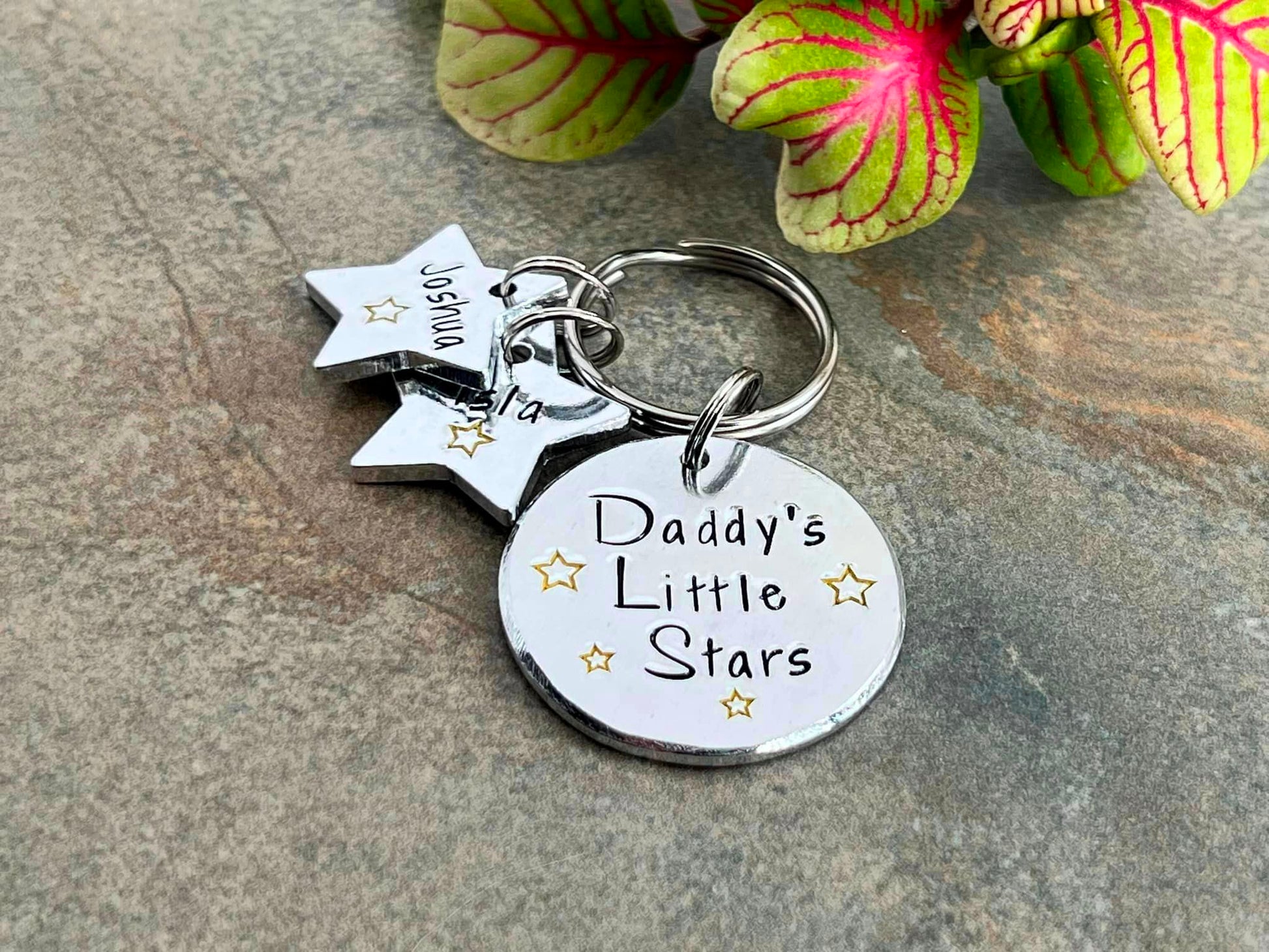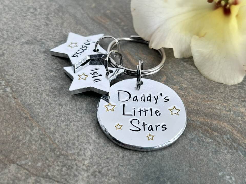 Hand stamped 'Daddy's little stars' personalised keyring makes an ideal Father's Day gift for dad.