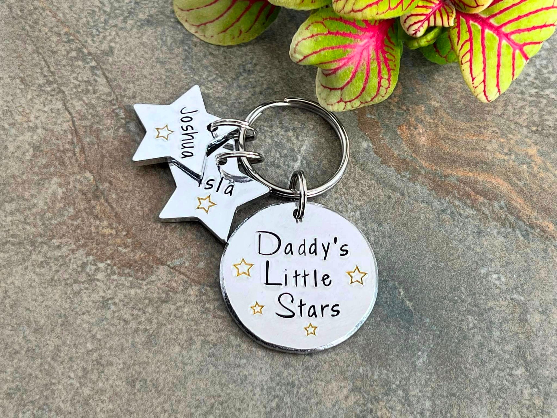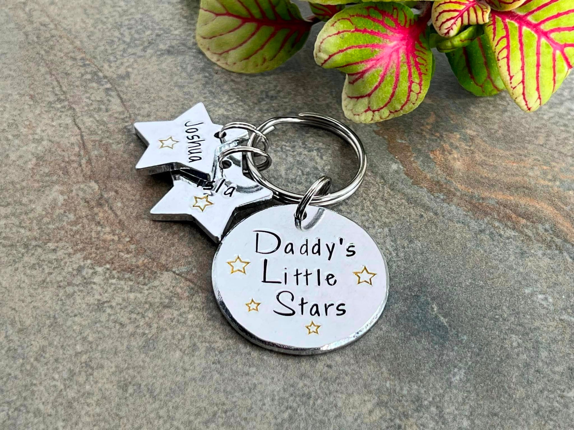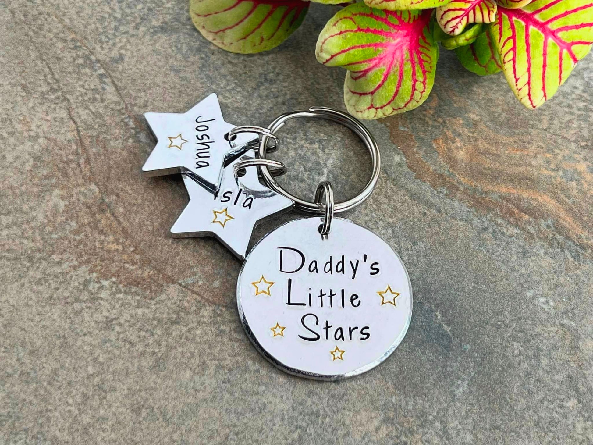 Hand stamped 'Daddy's little stars' personalised keyring makes an ideal Father's Day gift for dad.