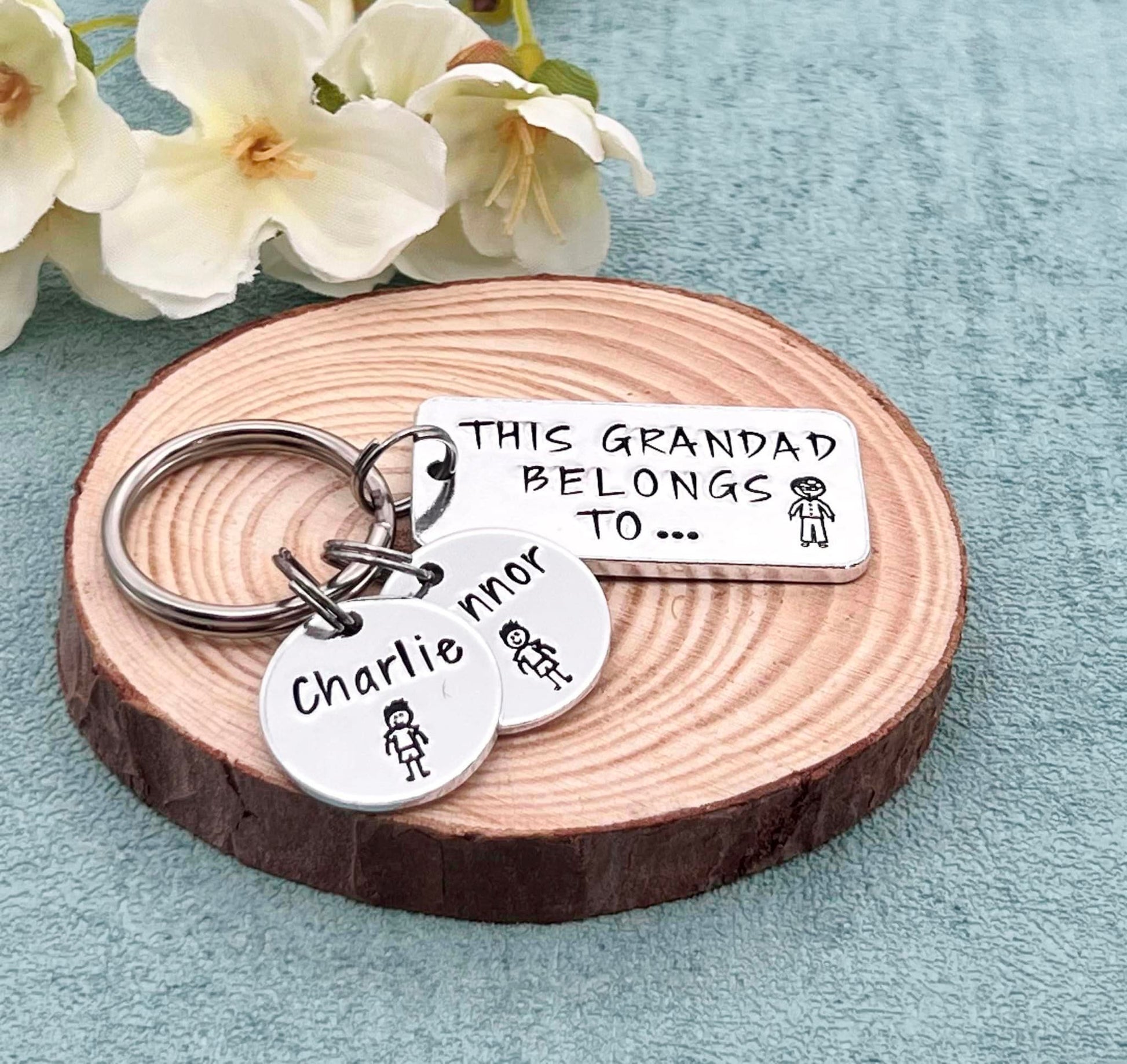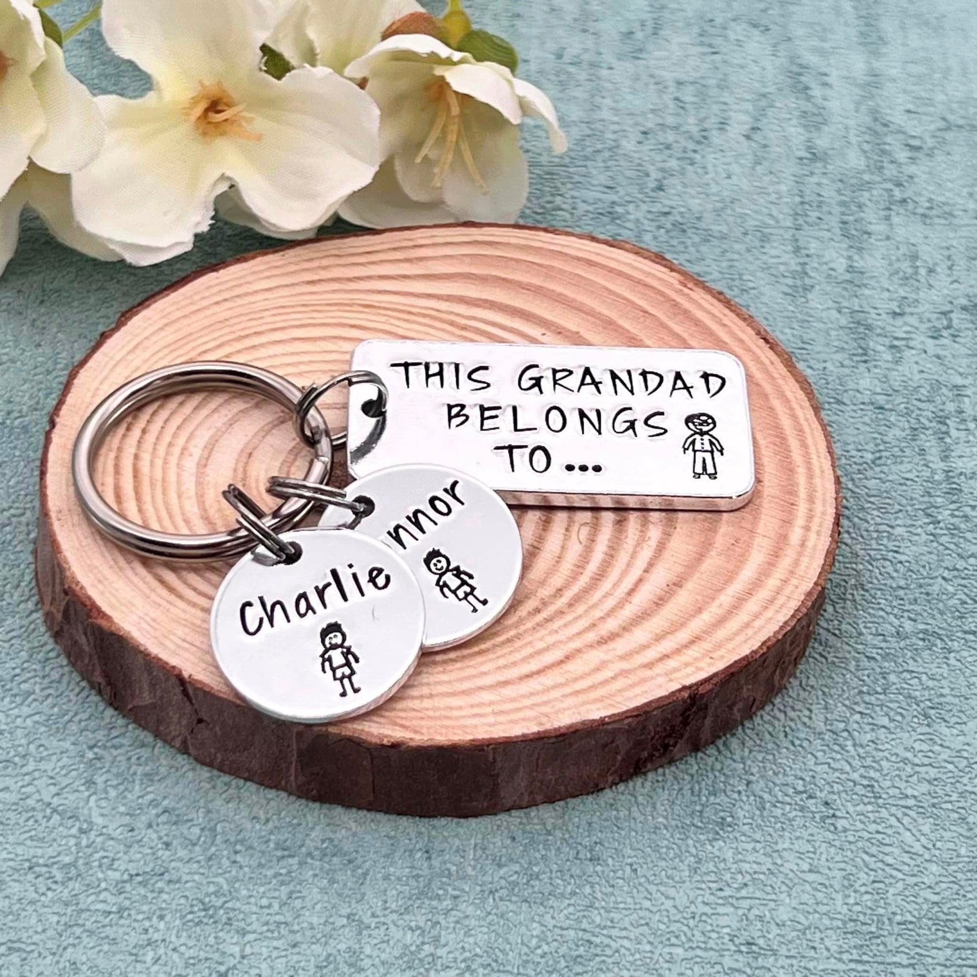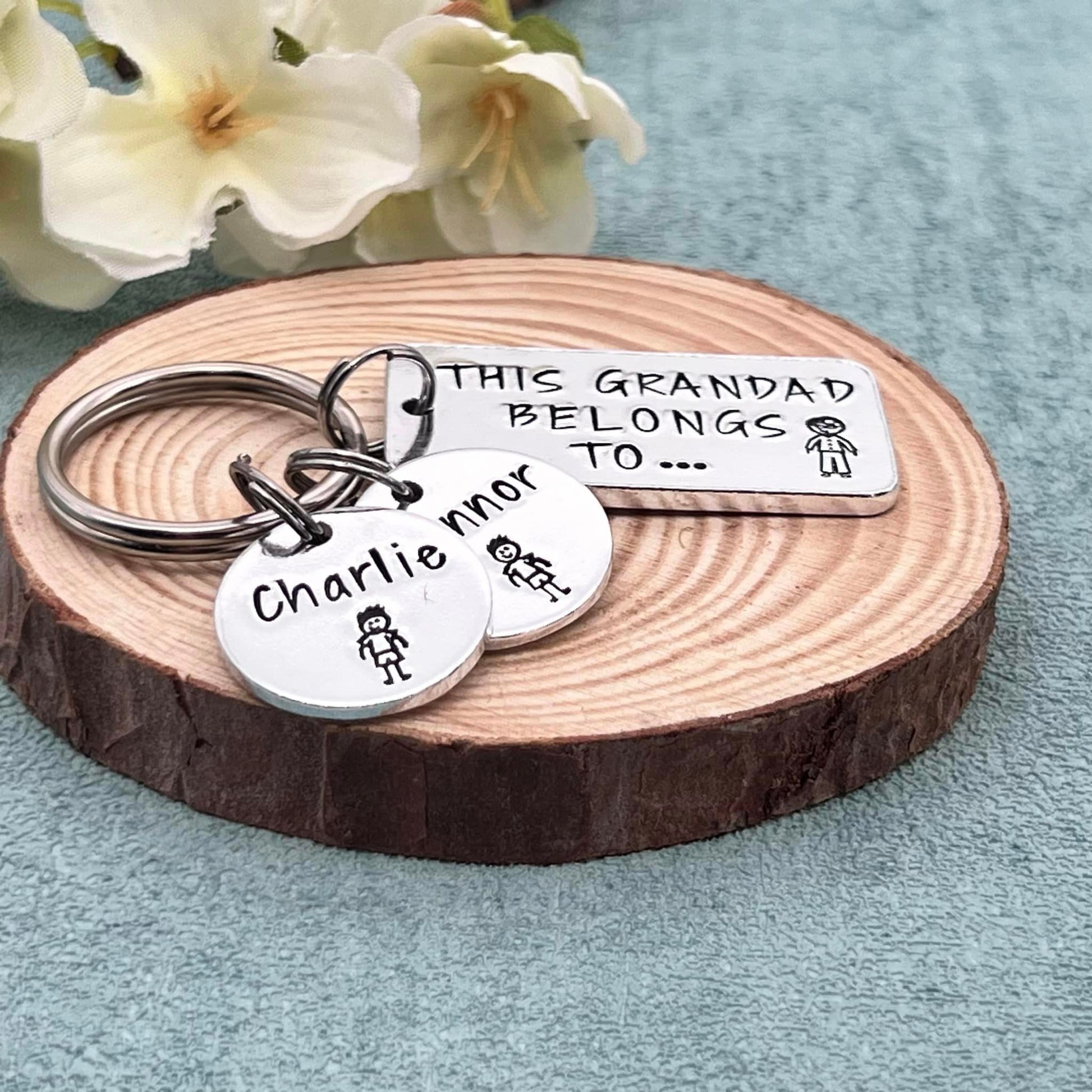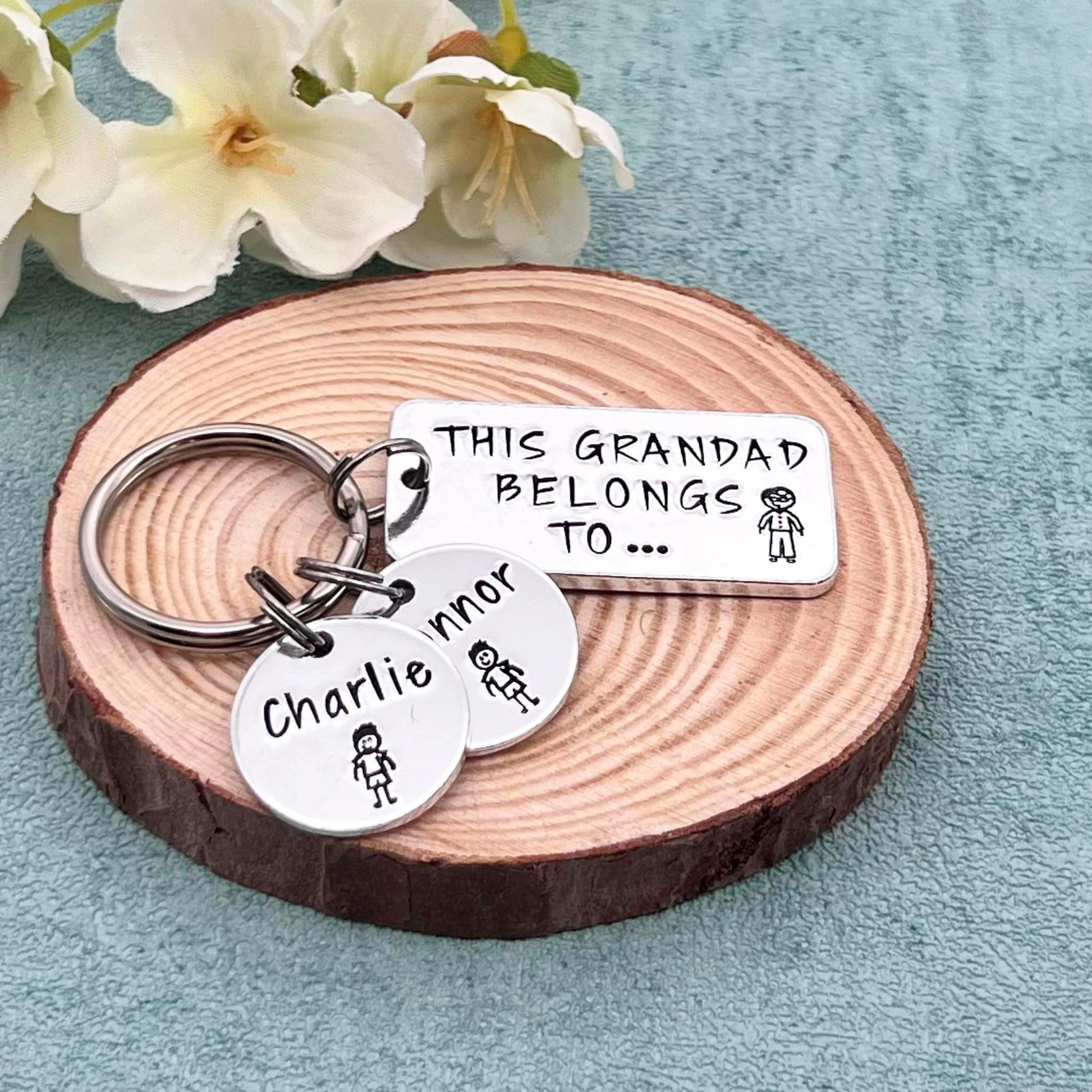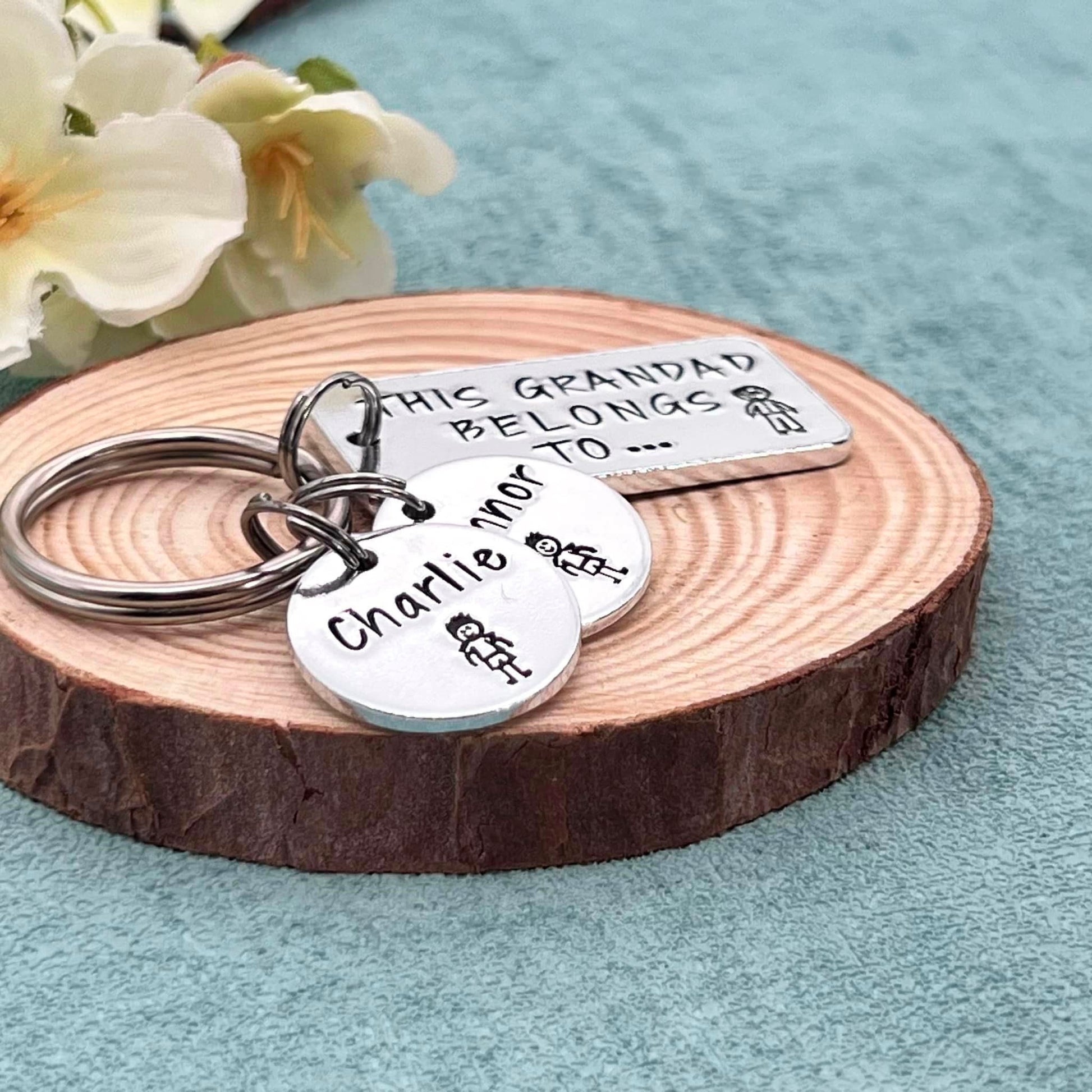 Hand stamped 'This Grandad belongs to' personalised keyring makes an ideal Father's Day gift for grandad.