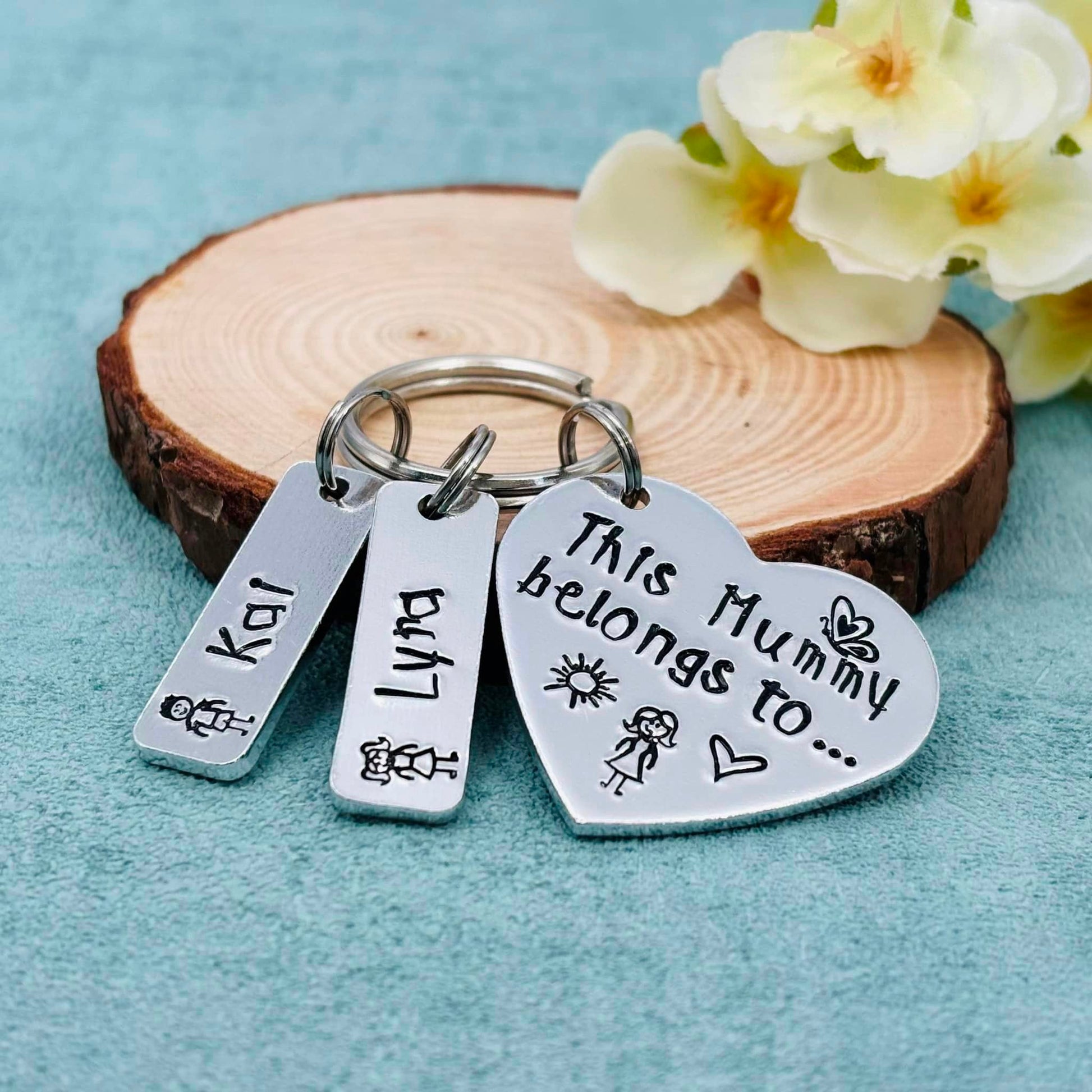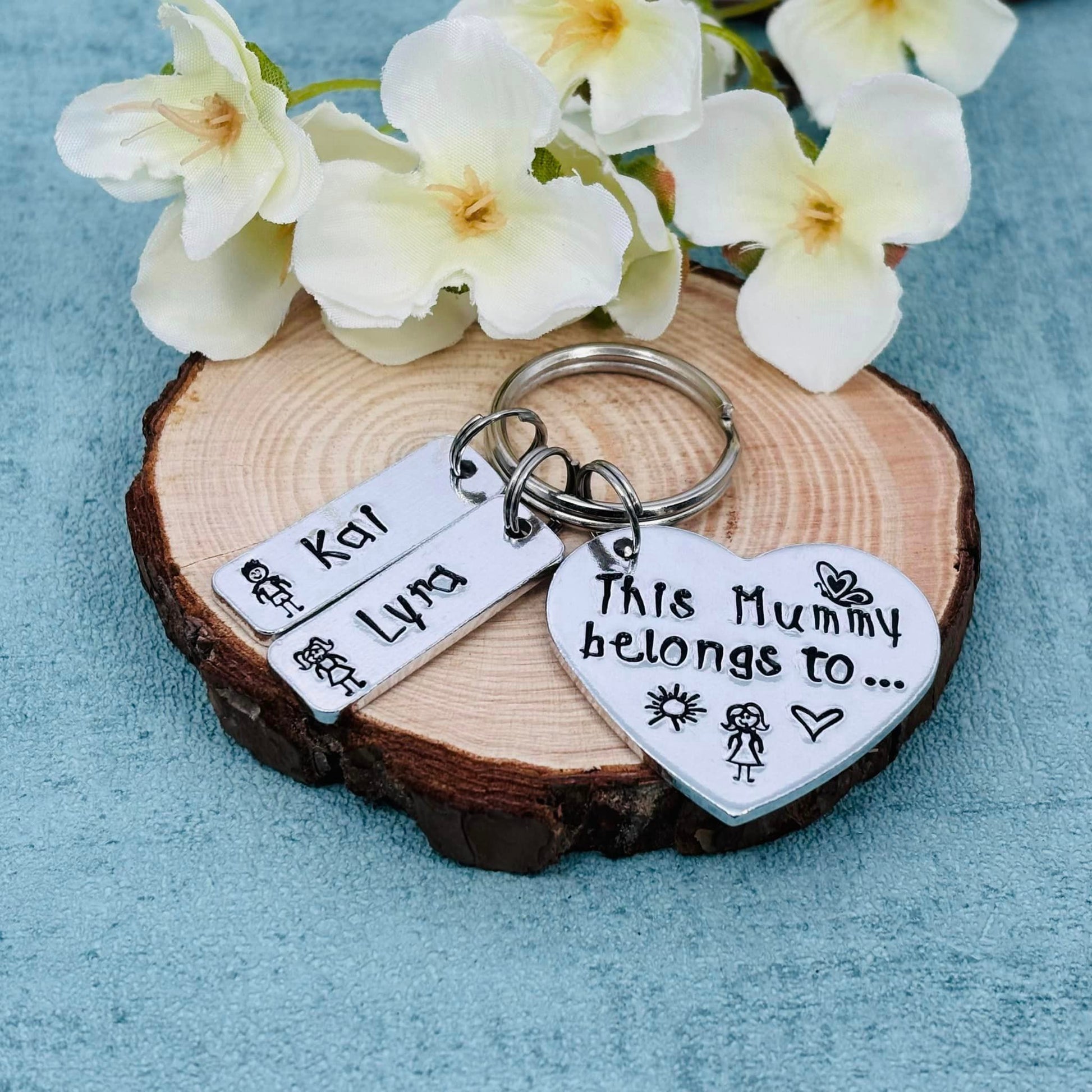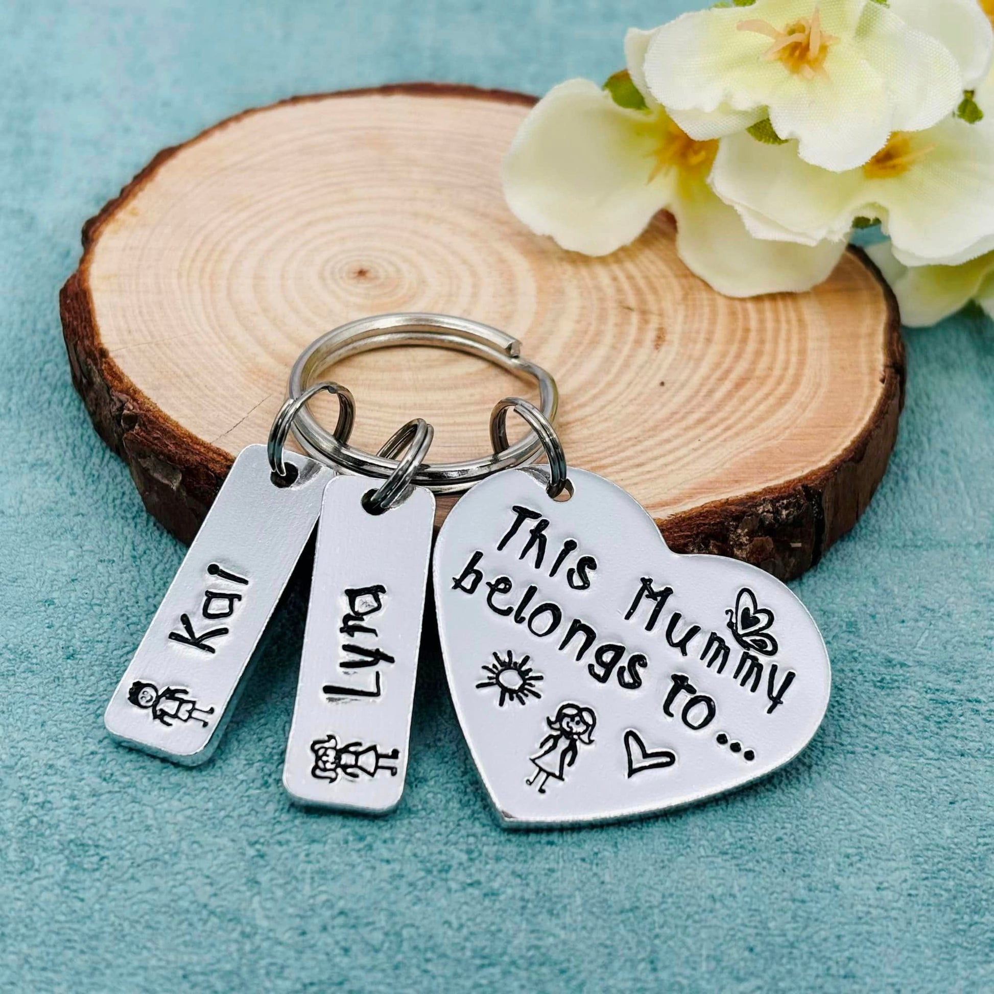 Hand stamped 'This Mummy belongs to' personalised keyring.