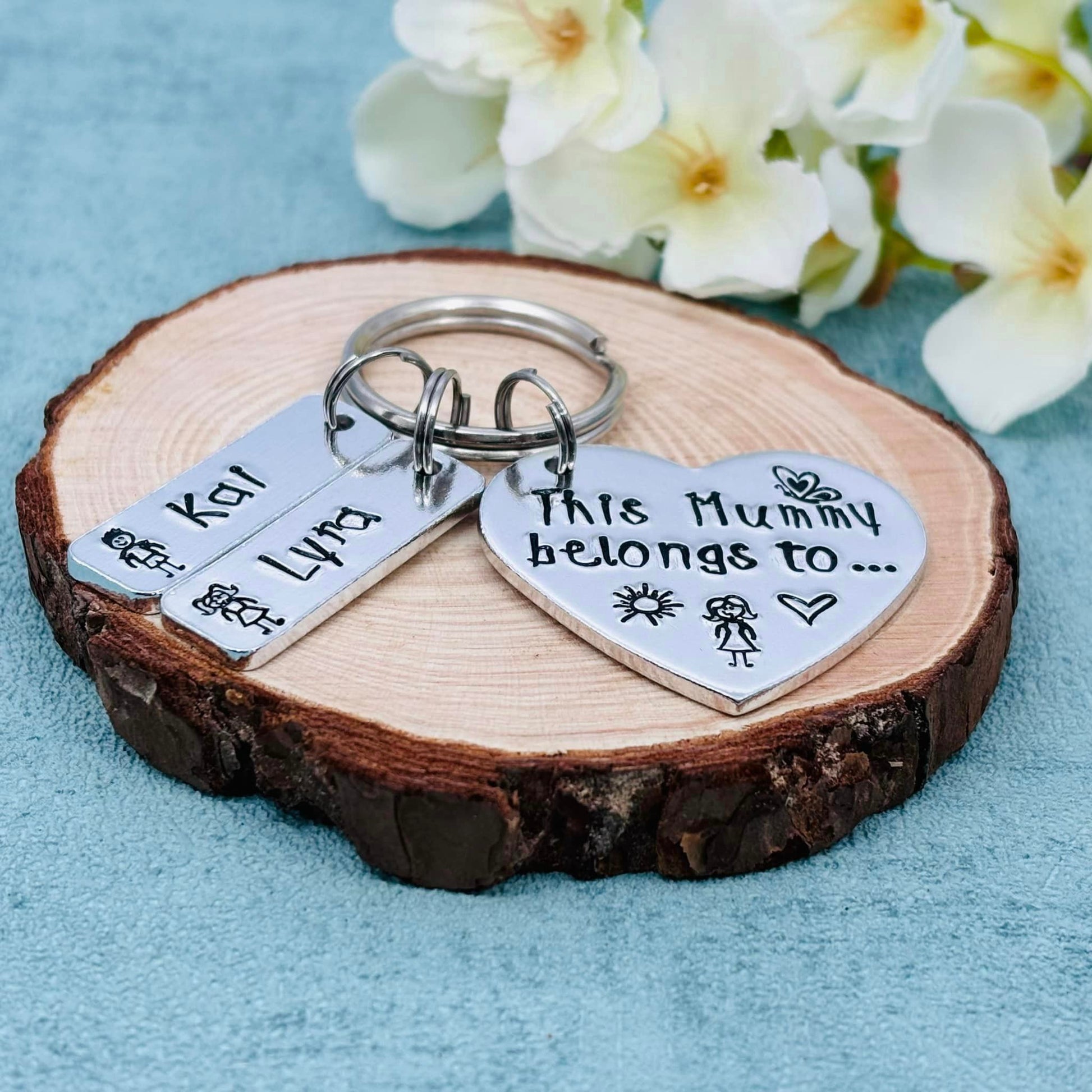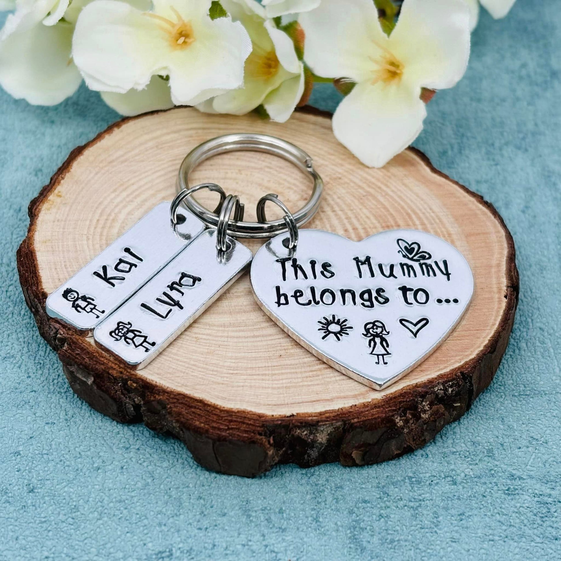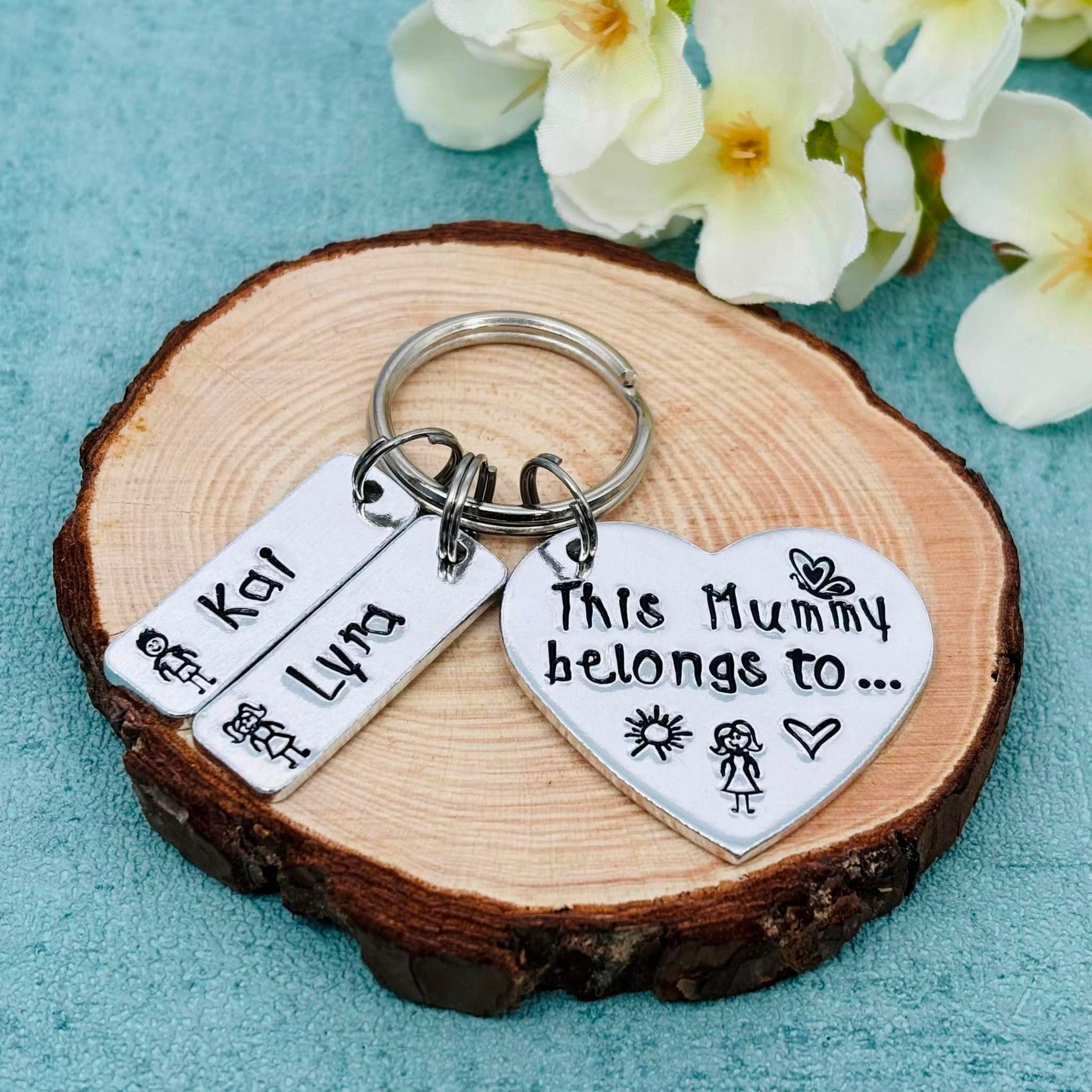 Hand stamped 'This Mummy belongs to' personalised keyring.