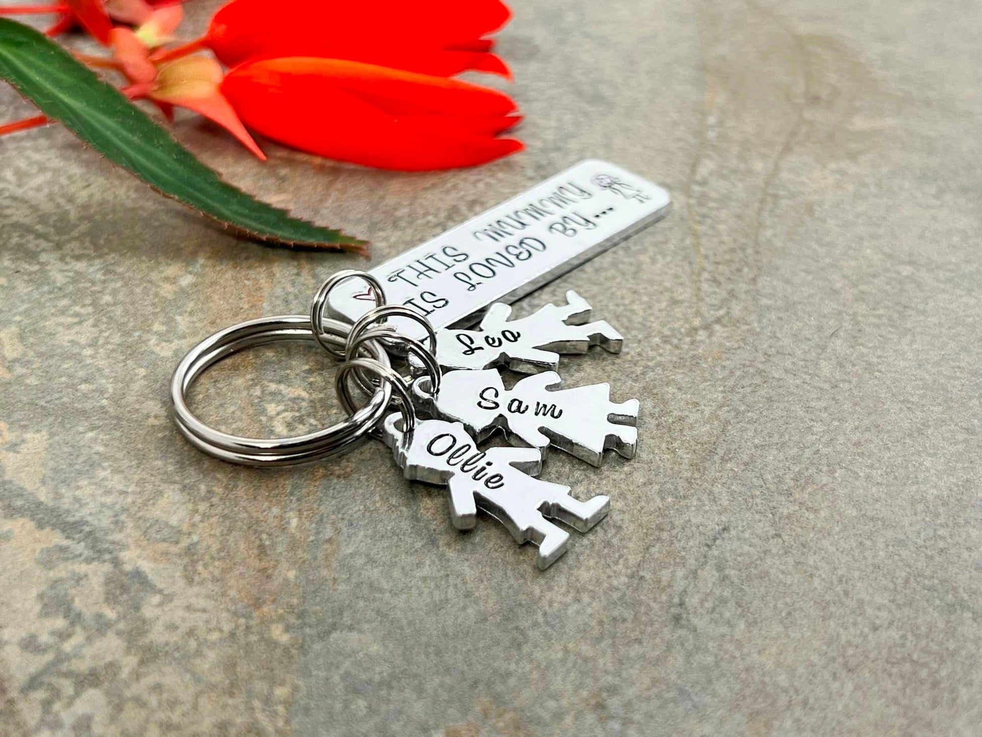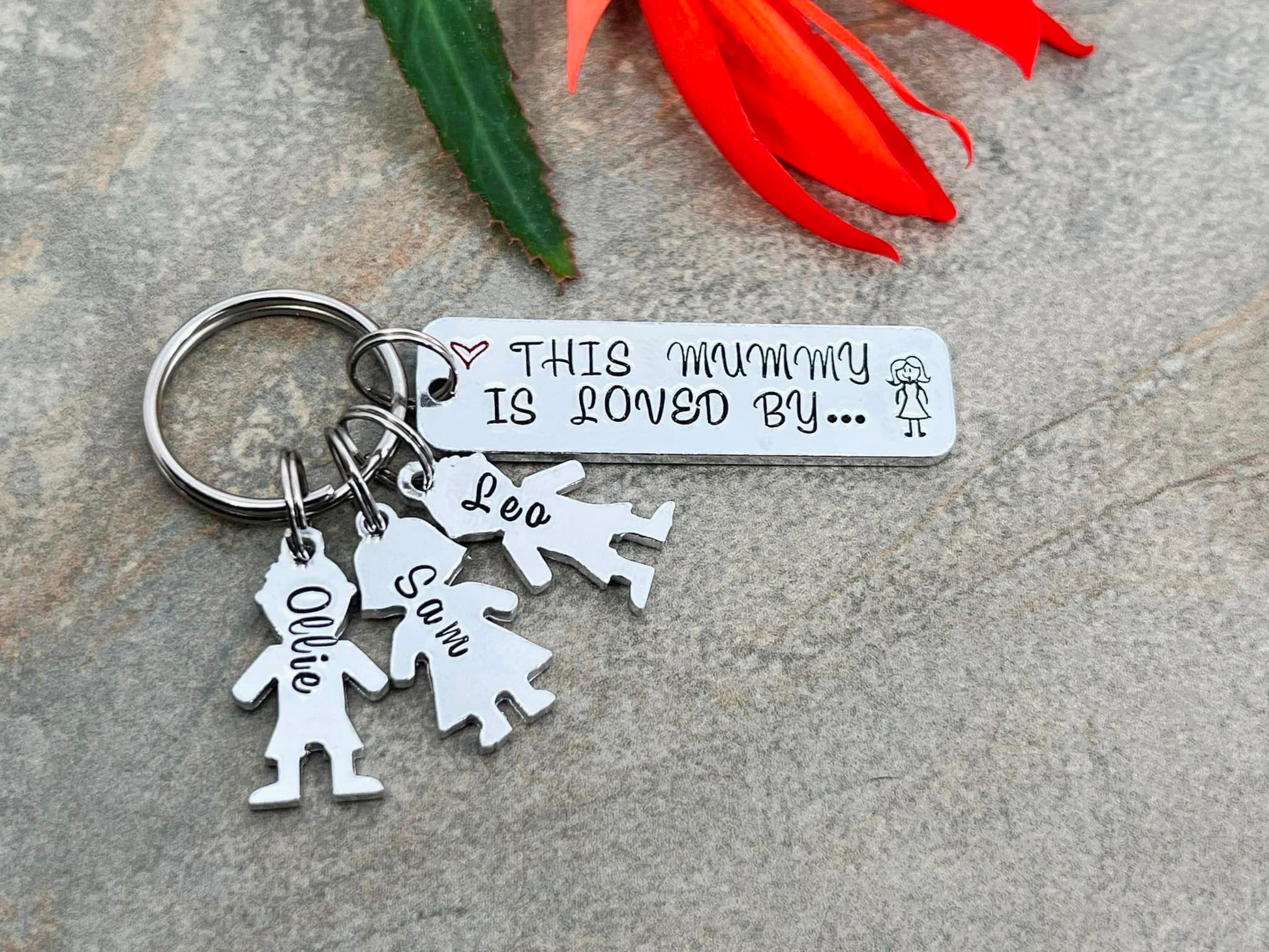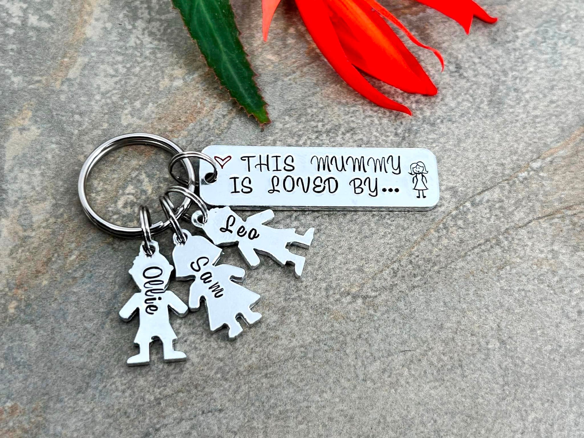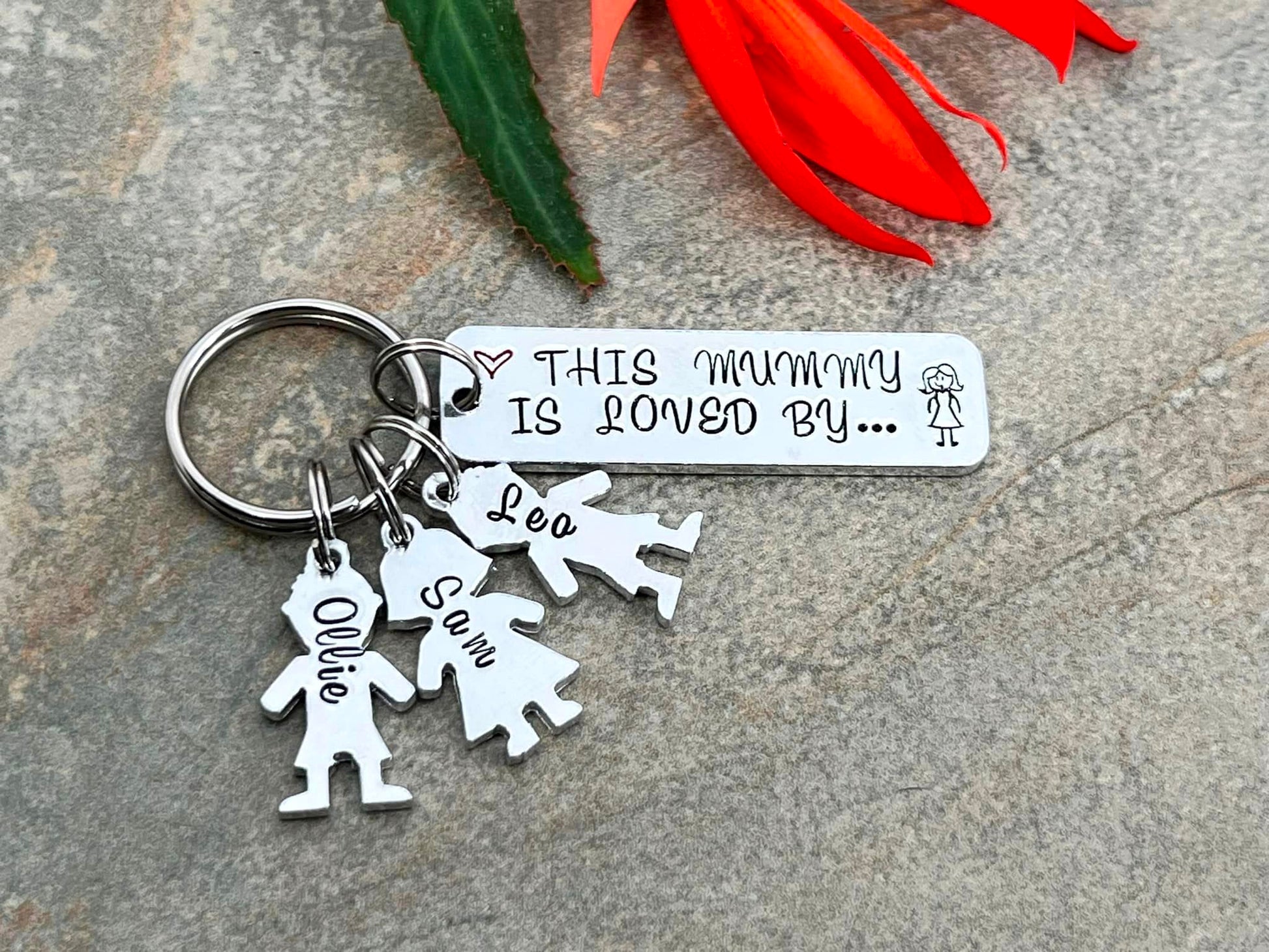 Hand stamped 'This Mummy is loved by' personalised keyring.