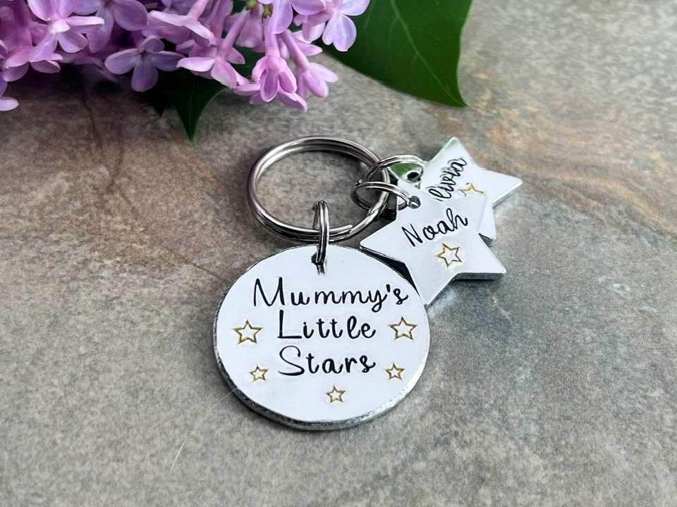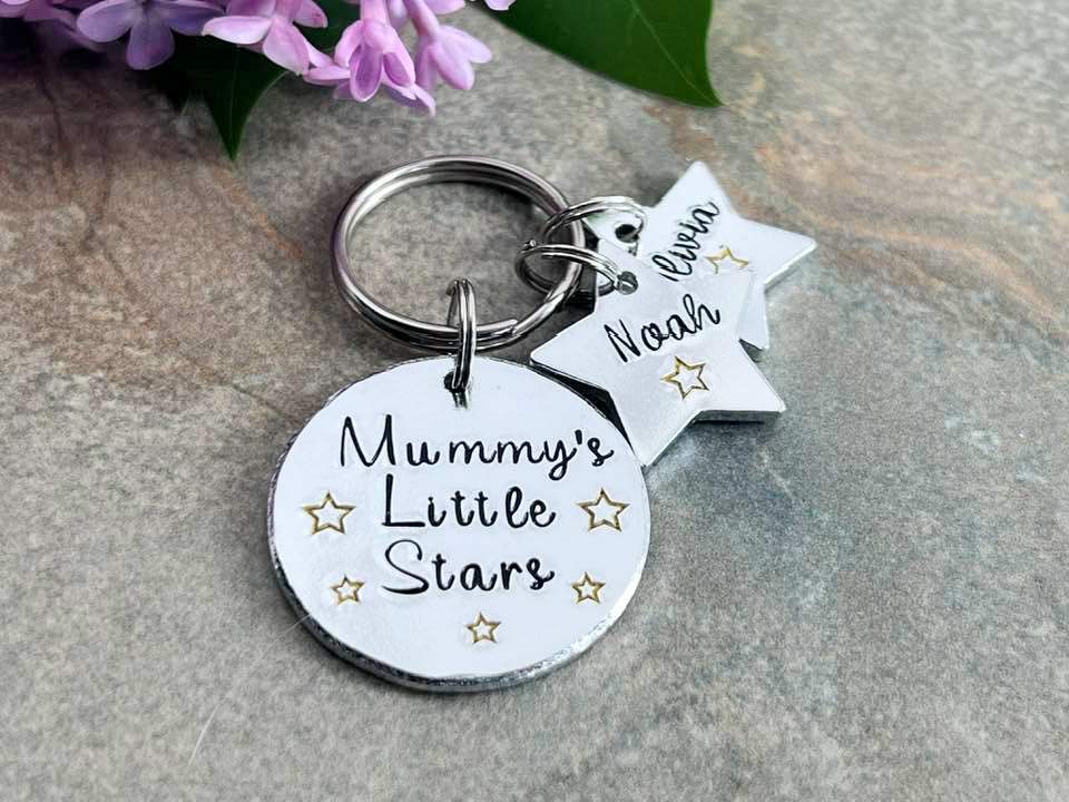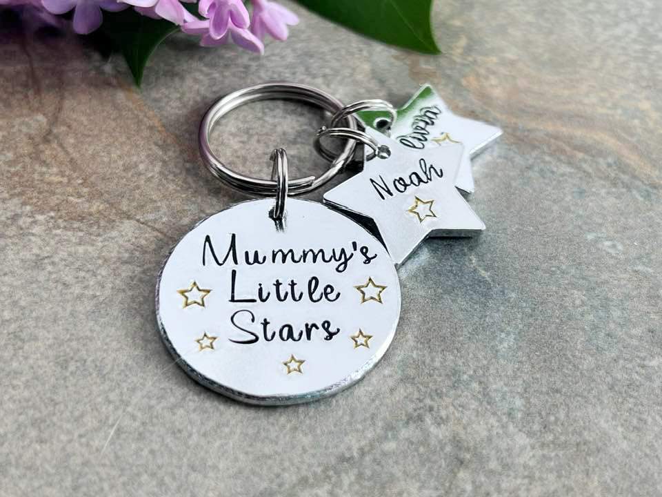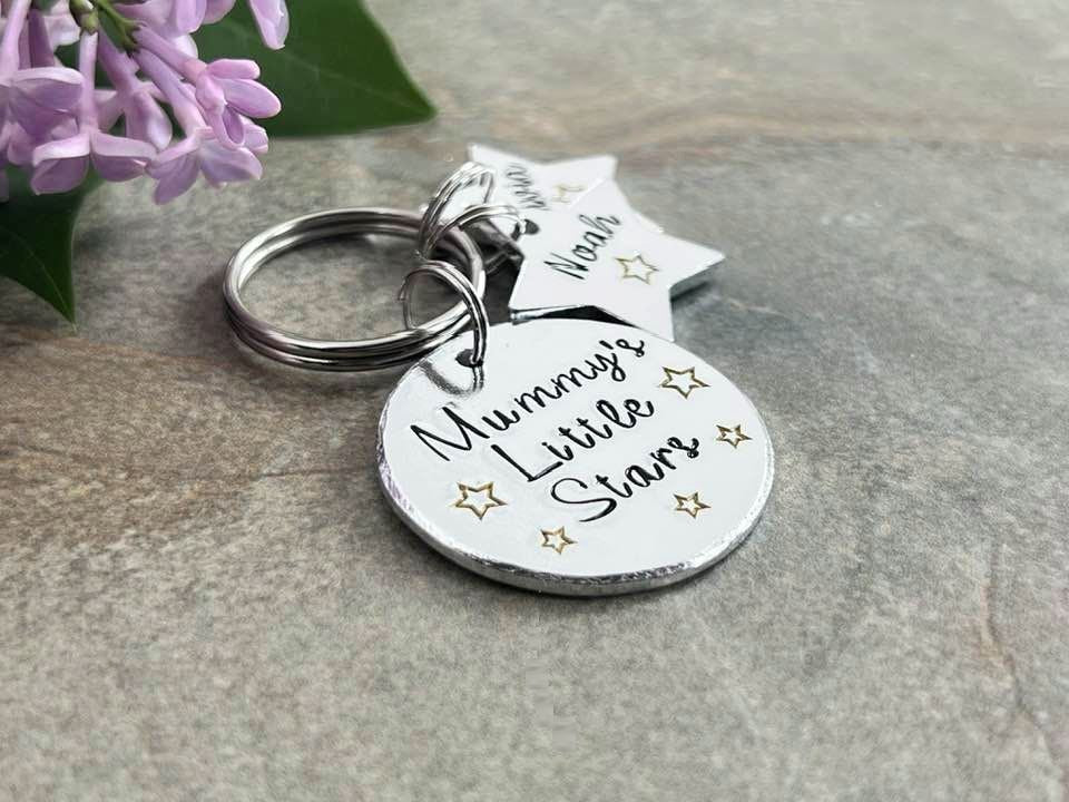 Hand stamped 'Mummy's little stars' personalised keyring makes an ideal Mother's Day gift.