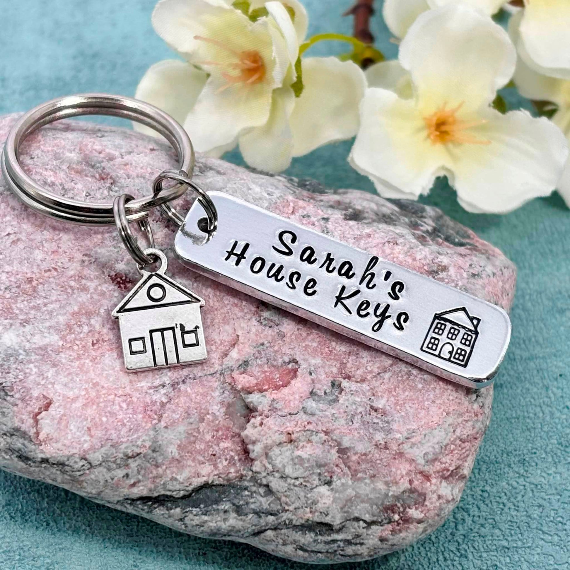 Personalised Name House Keys Keyring. Ideal First Home Gift.