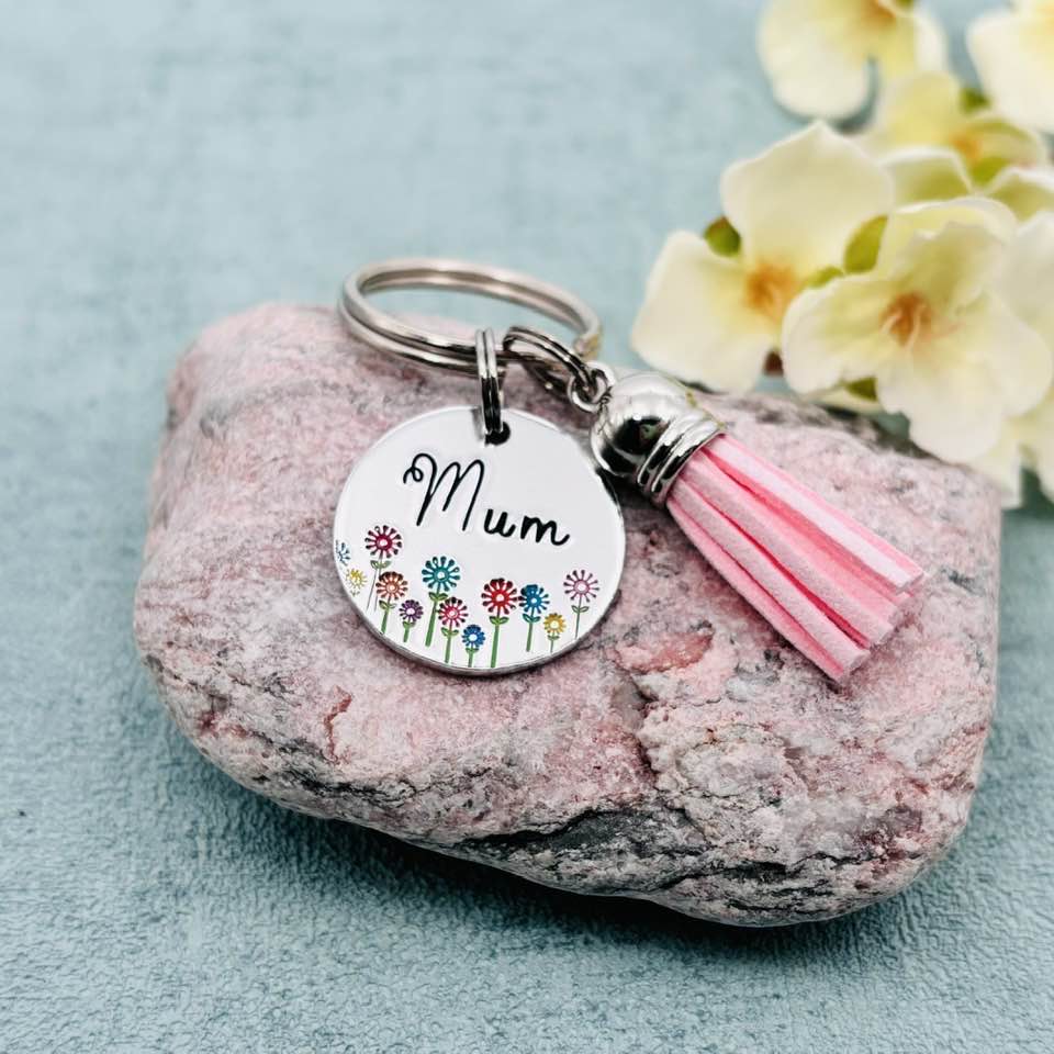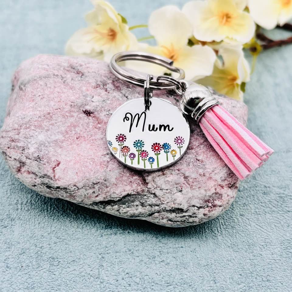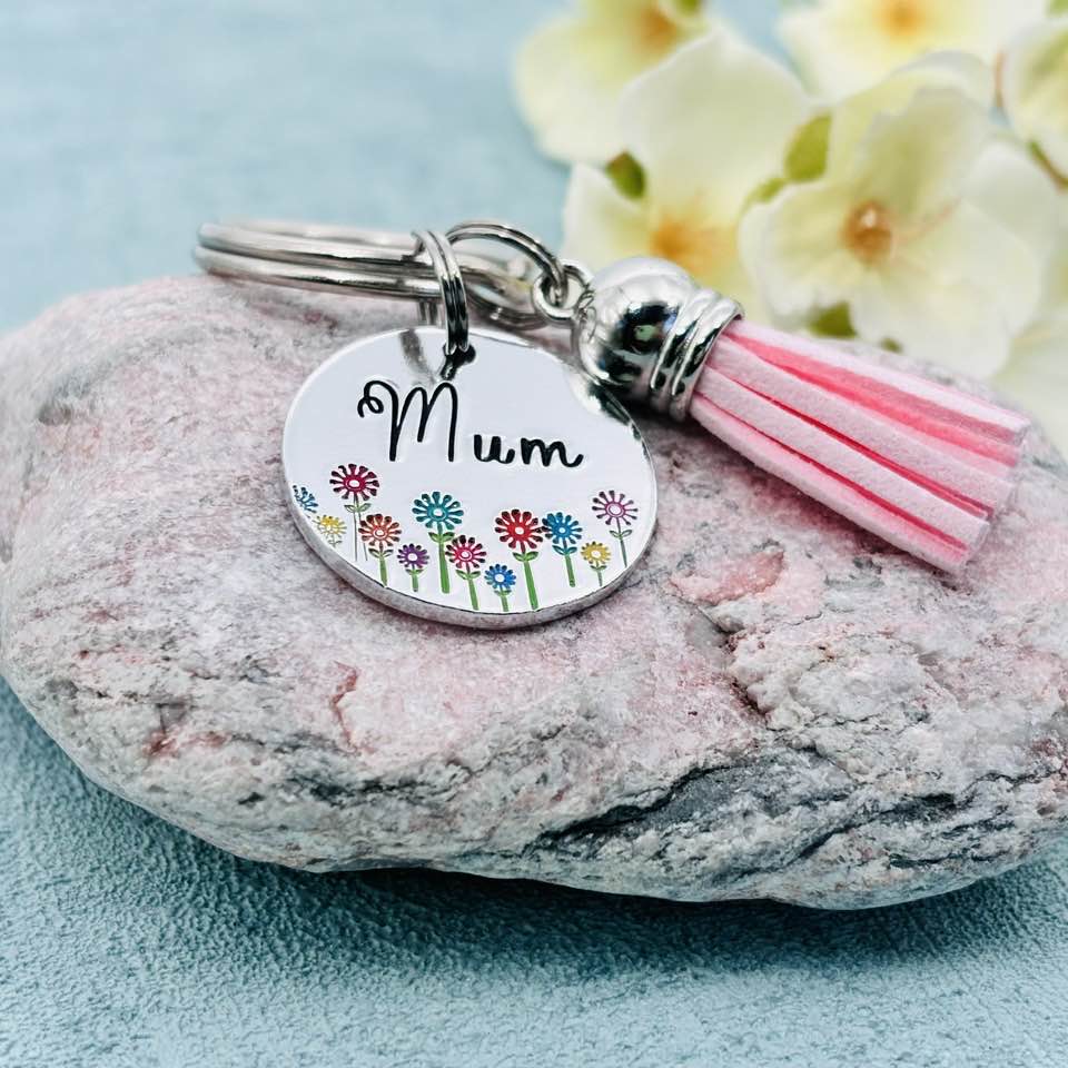 Hand stamped personalised name keyring.