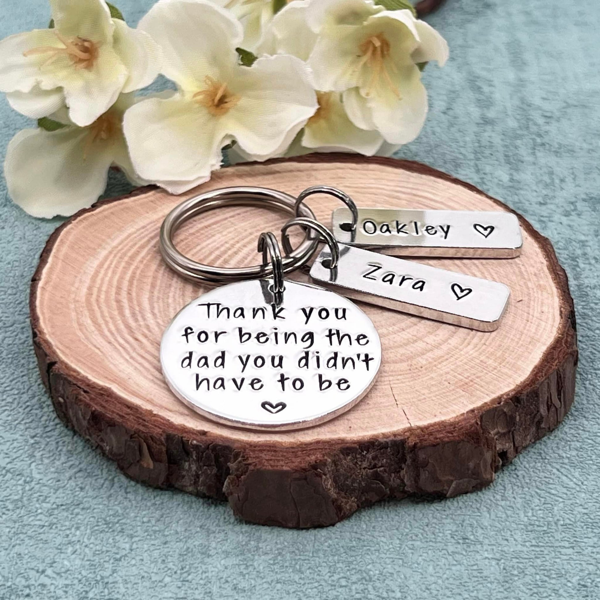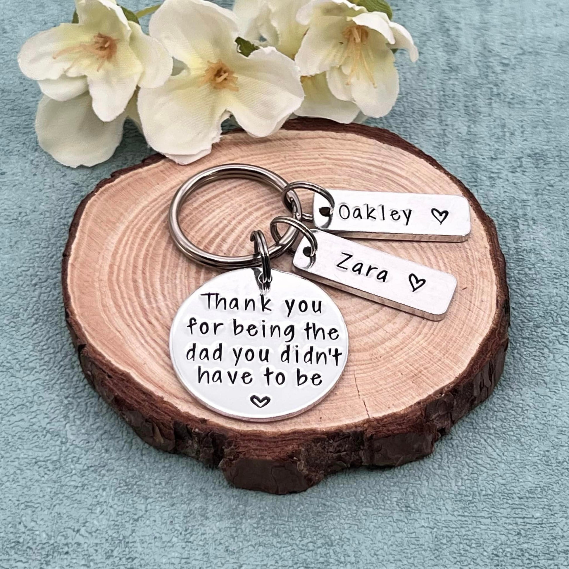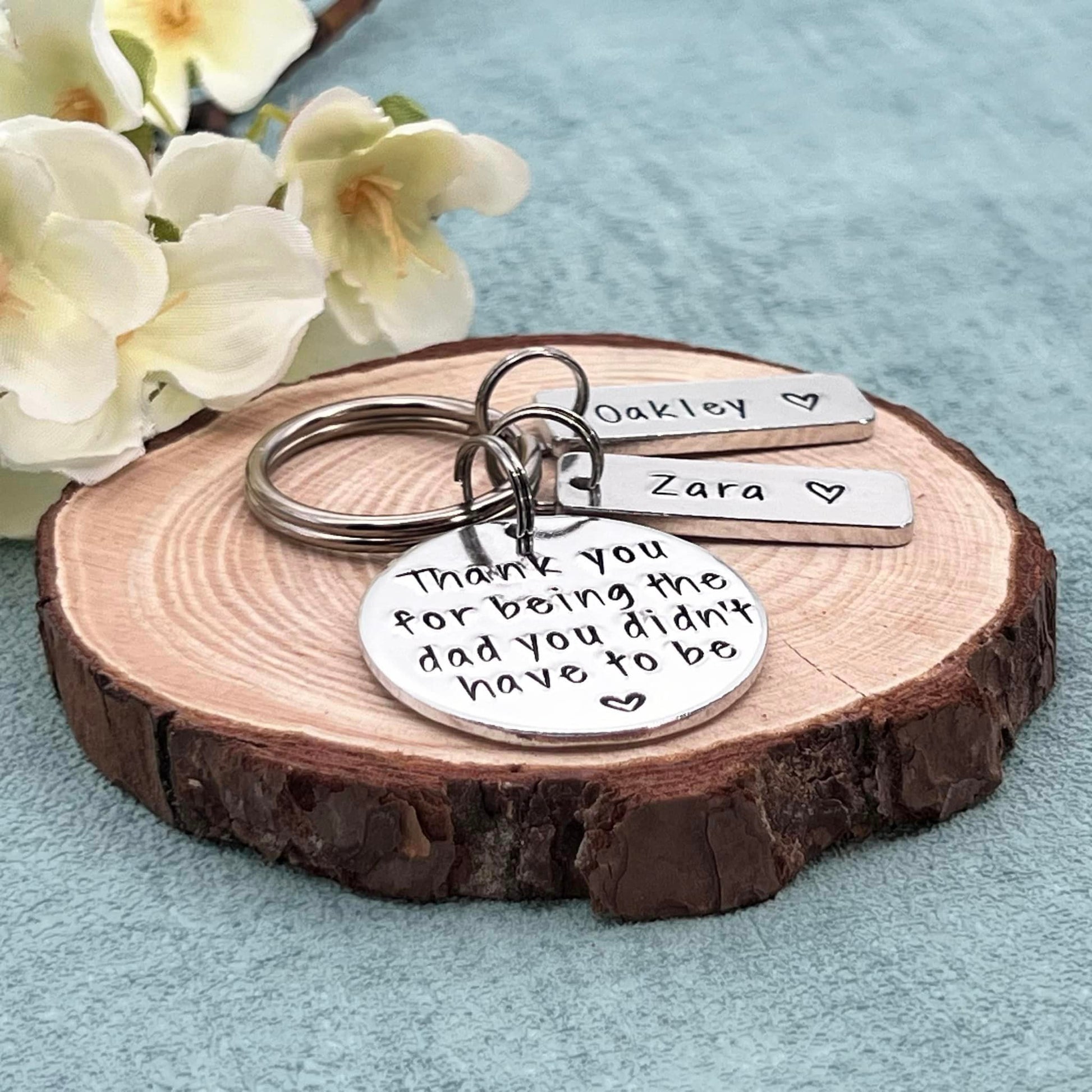 Hand stamped personalised stepdad keyring makes an ideal Father's Day gift.