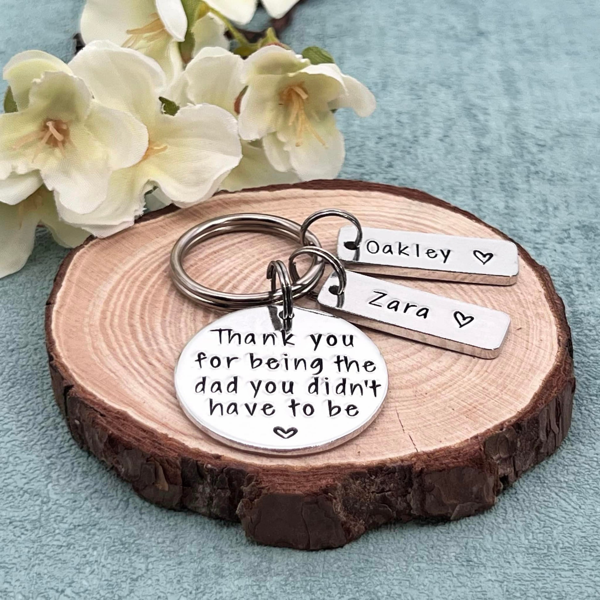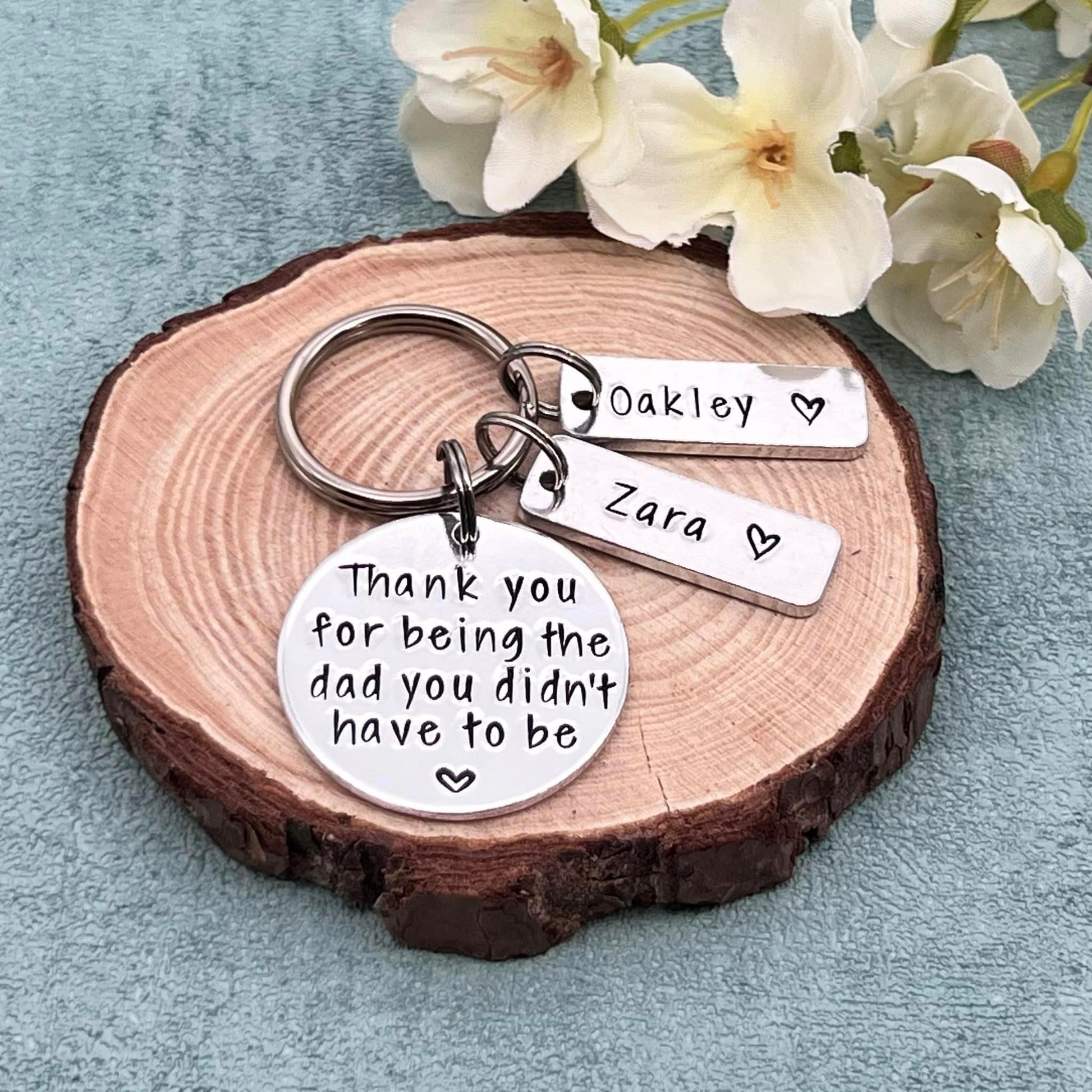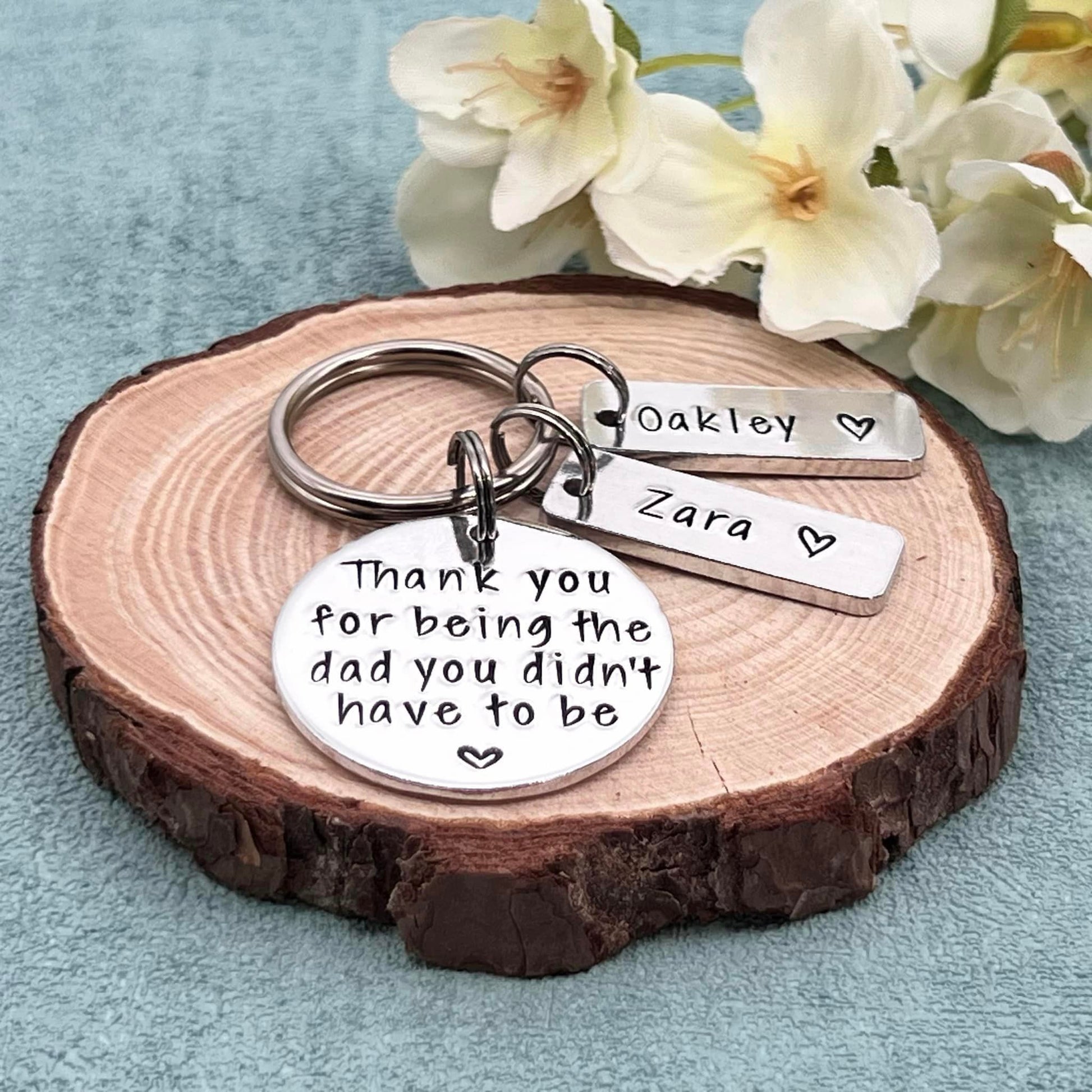 Hand stamped personalised stepdad keyring makes an ideal Father's Day gift.