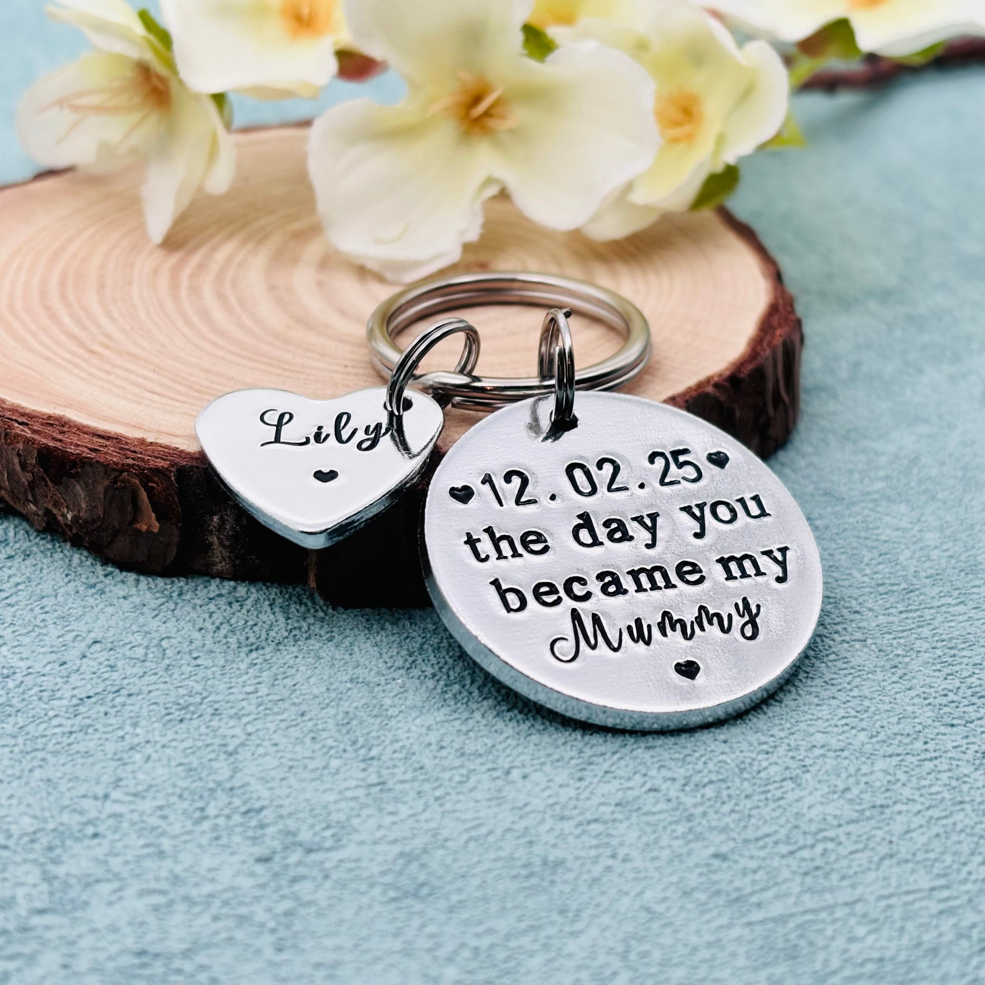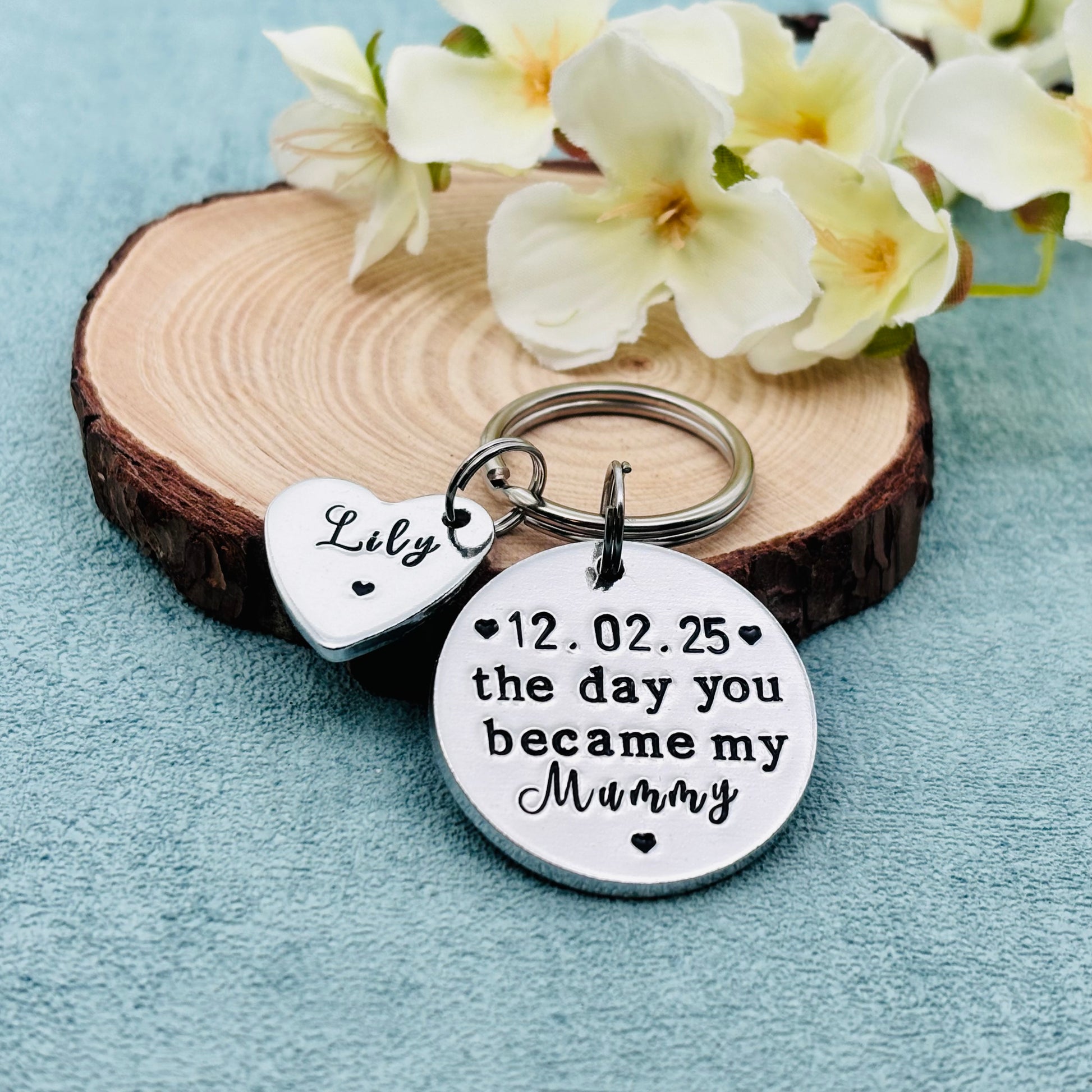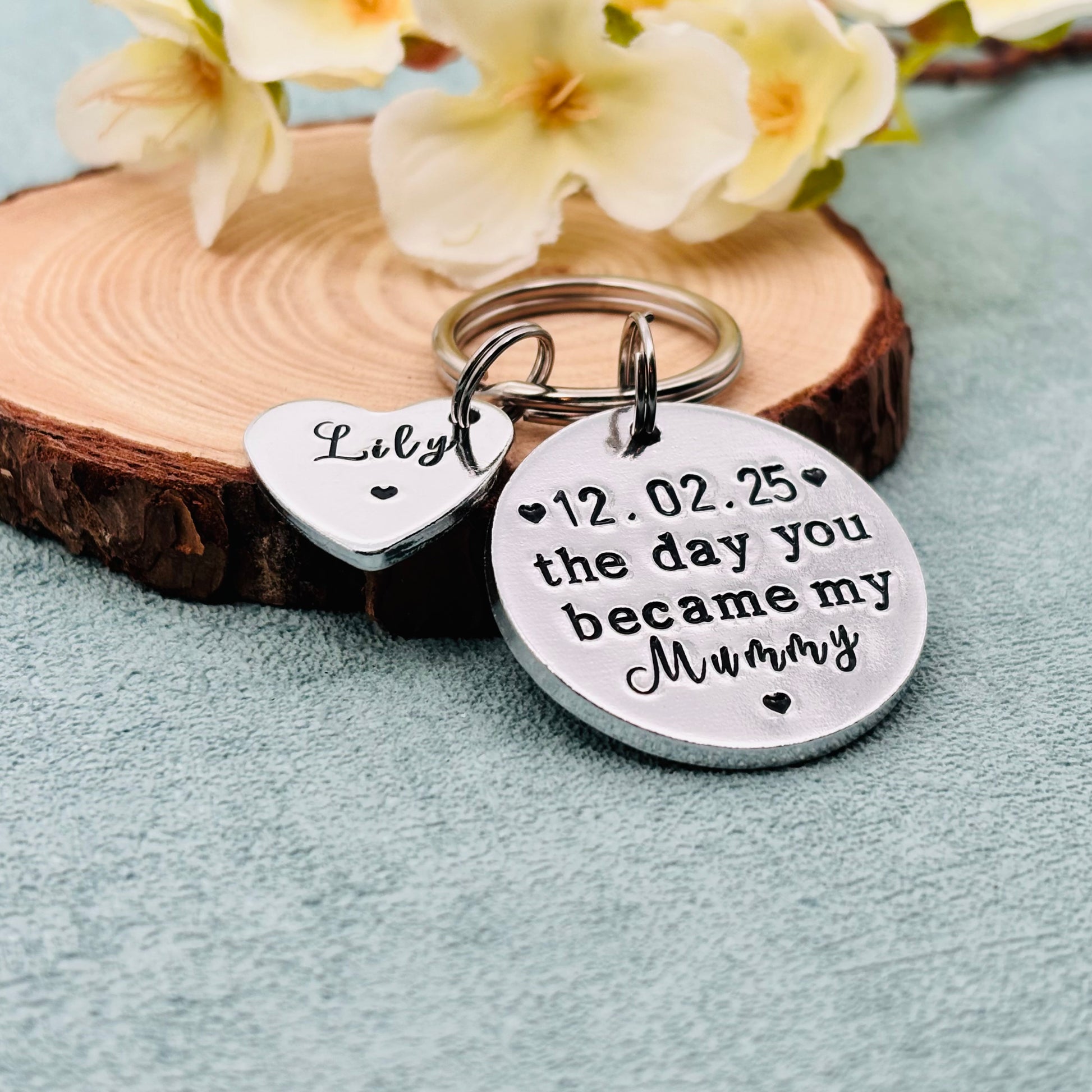 Hand stamped personalised 'The day you became my mummy' keyring makes an ideal gift perfect for Mother’s Day gift.