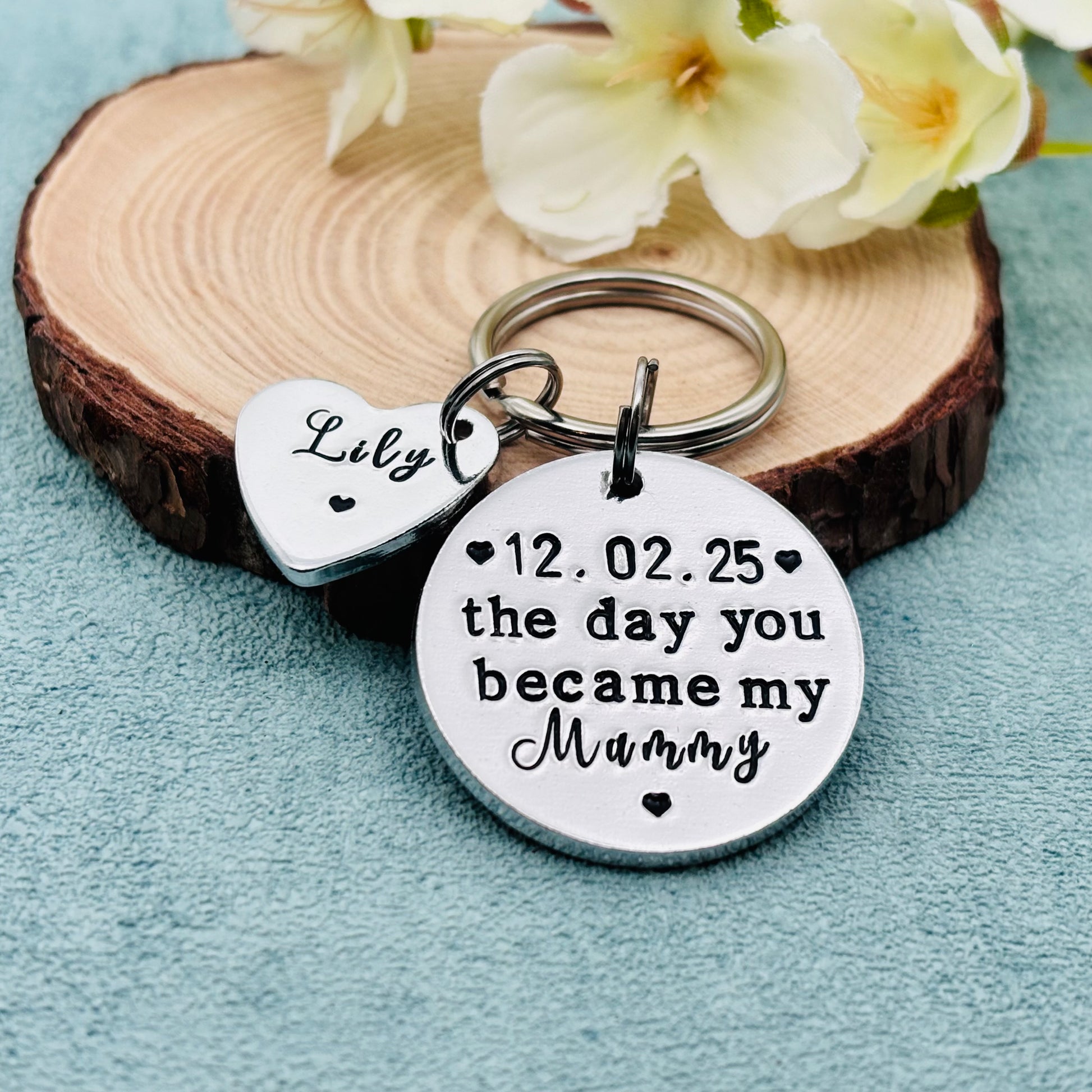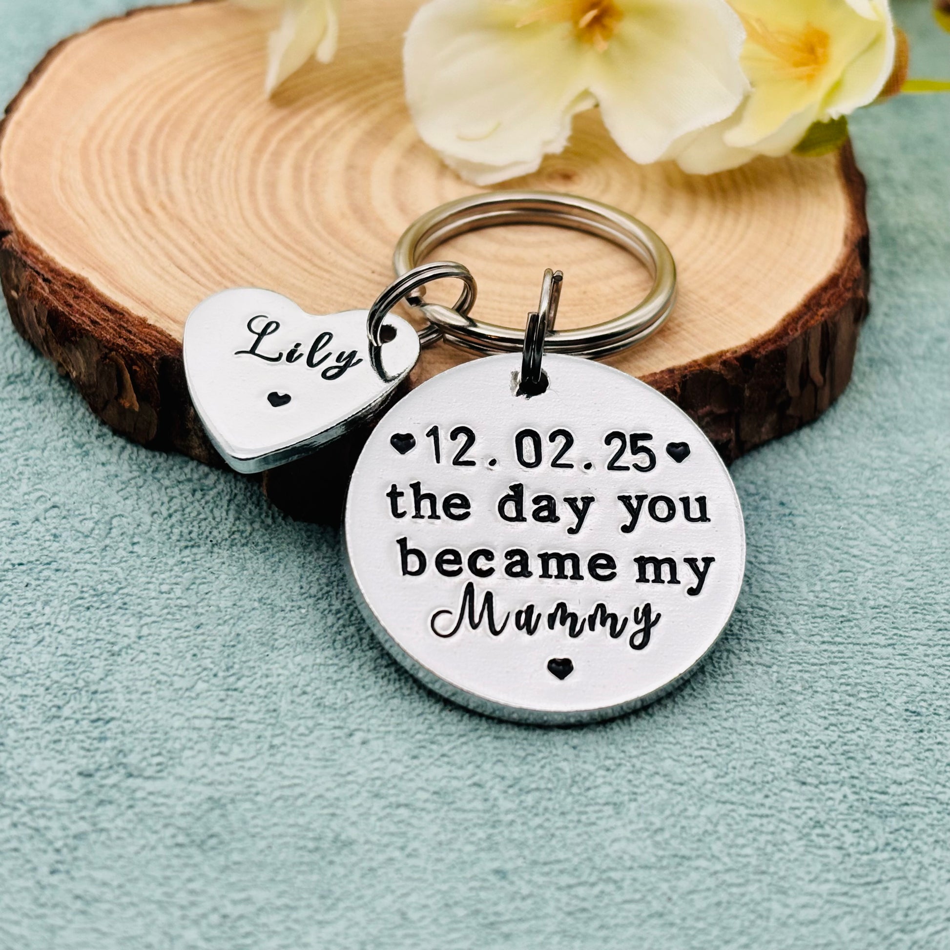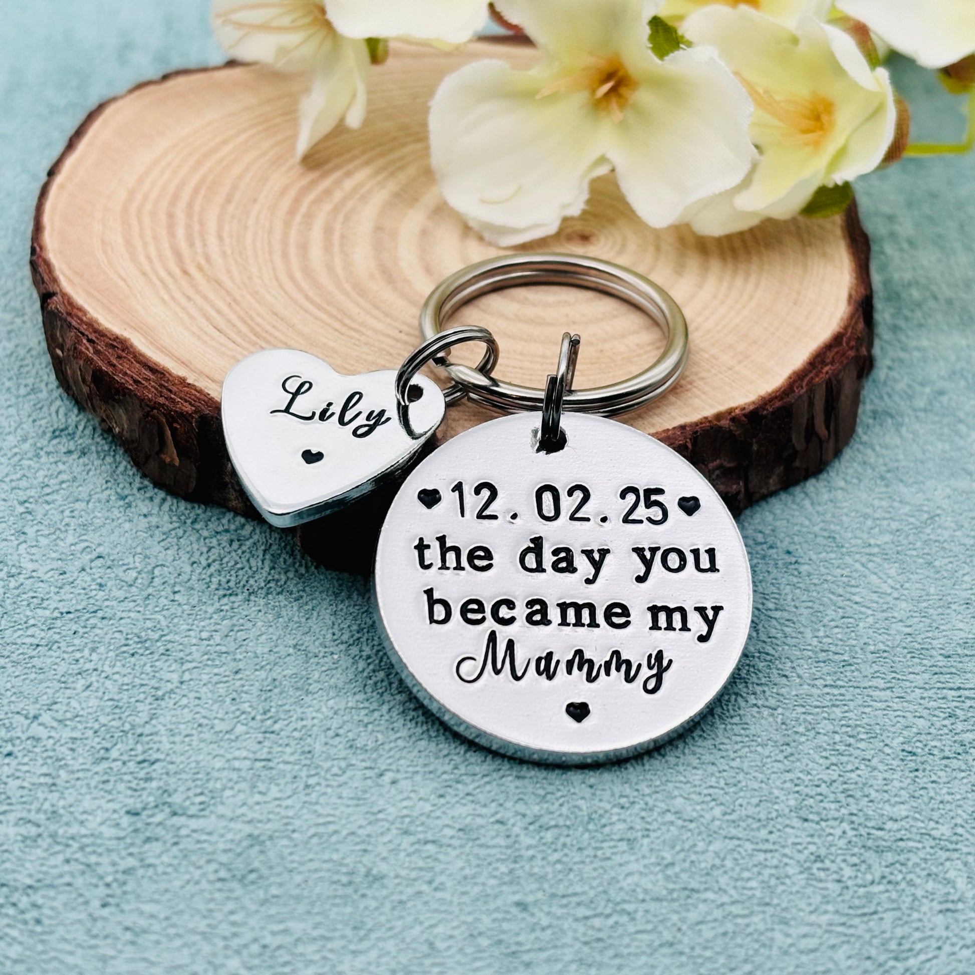 Hand stamped personalised 'The day you became my mummy' keyring makes an ideal gift perfect for Mother’s Day gift.