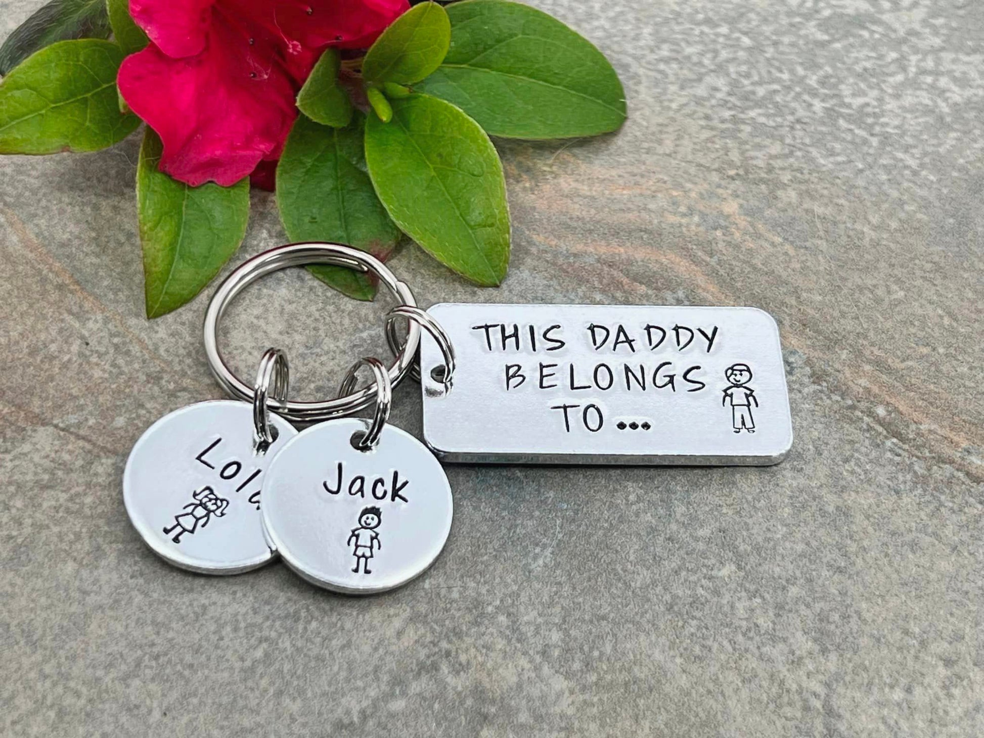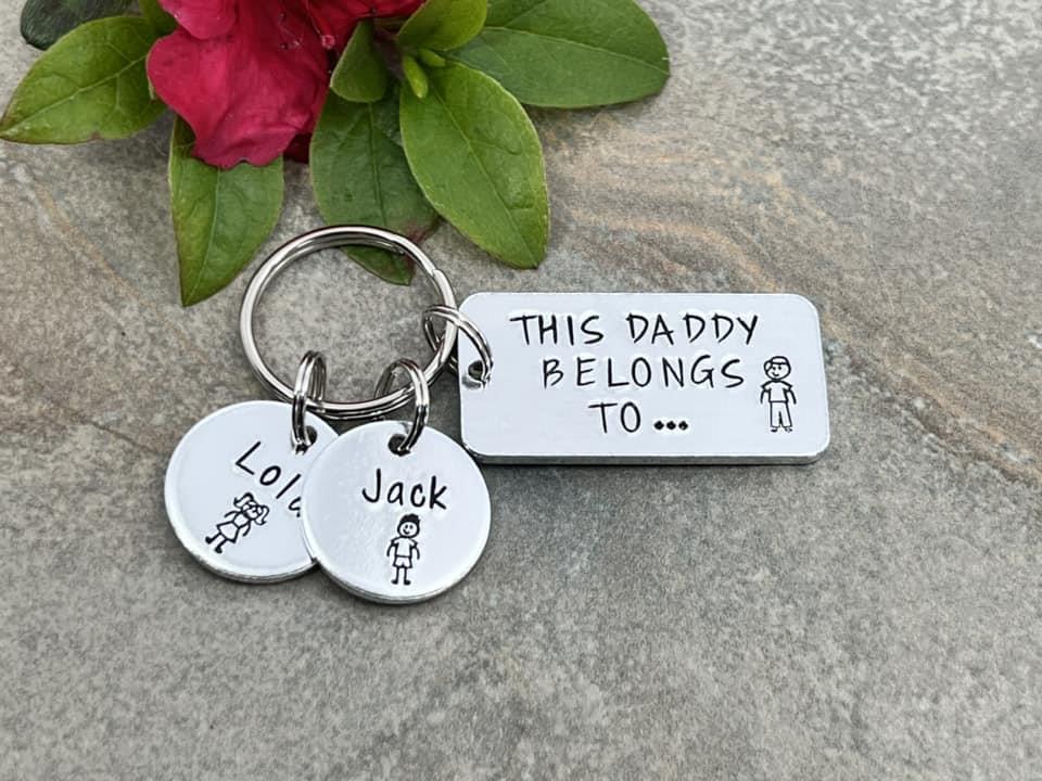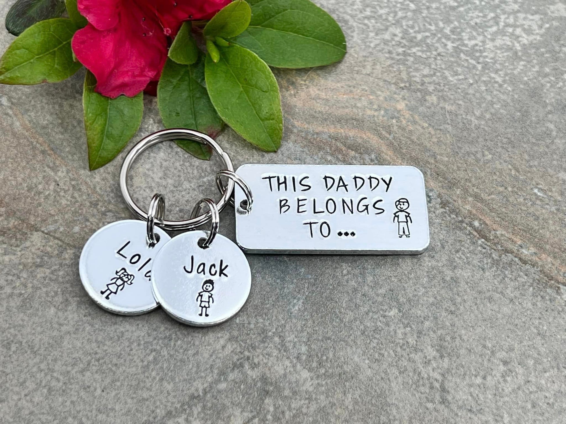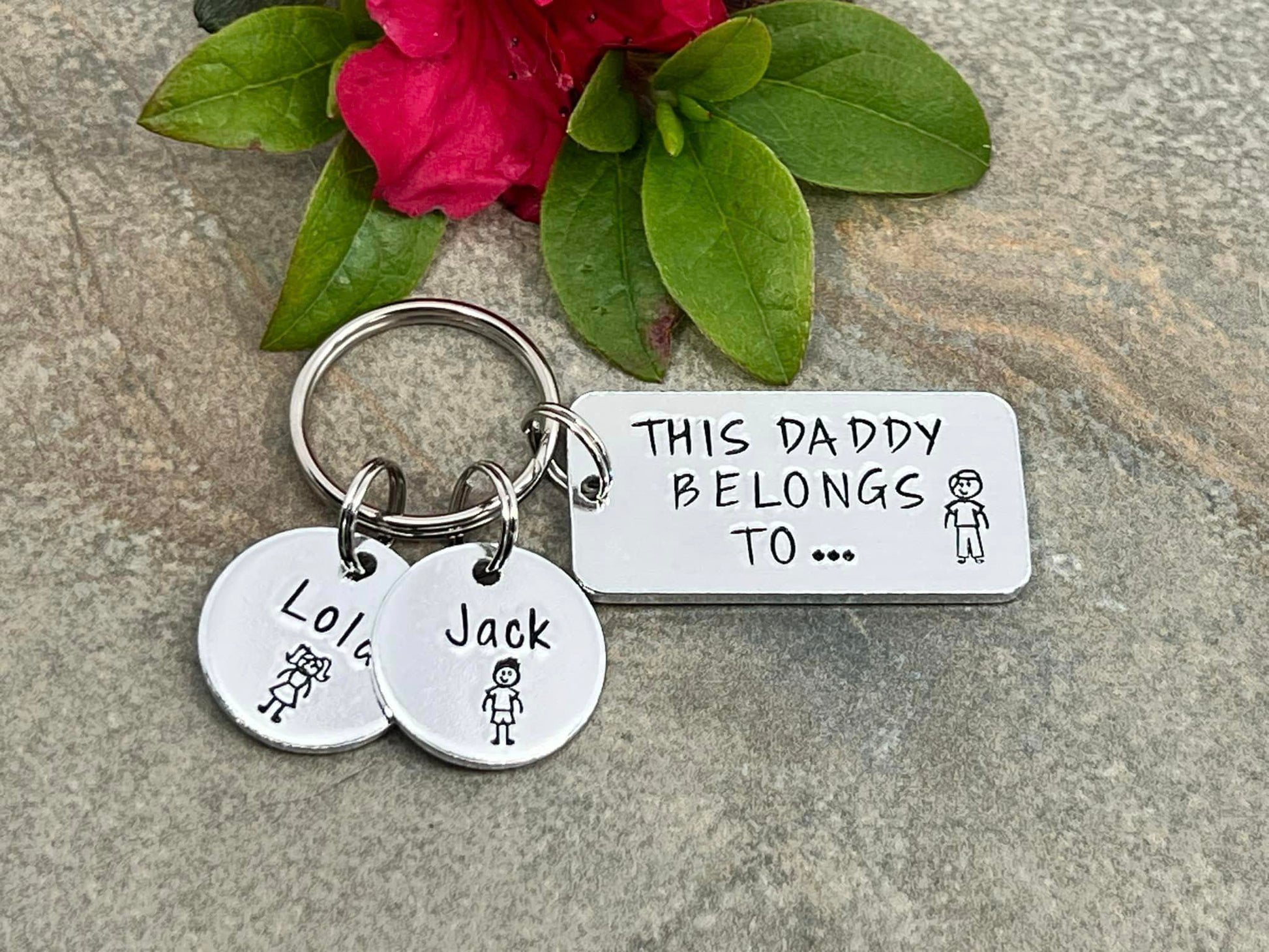 Hand stamped 'This Daddy belongs to' personalised keyring makes an ideal gift perfect for Father's Day.