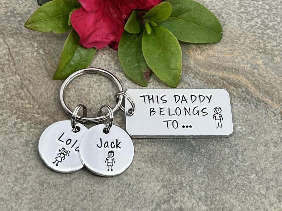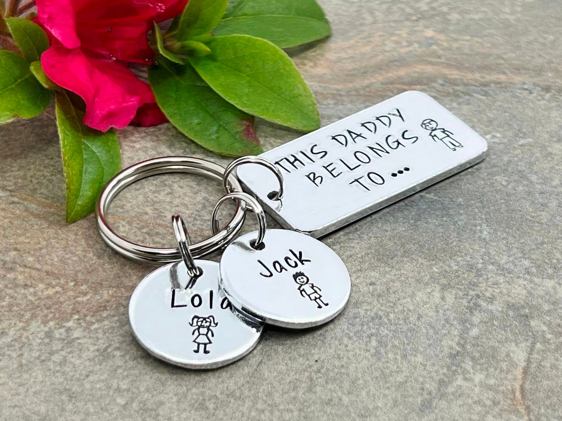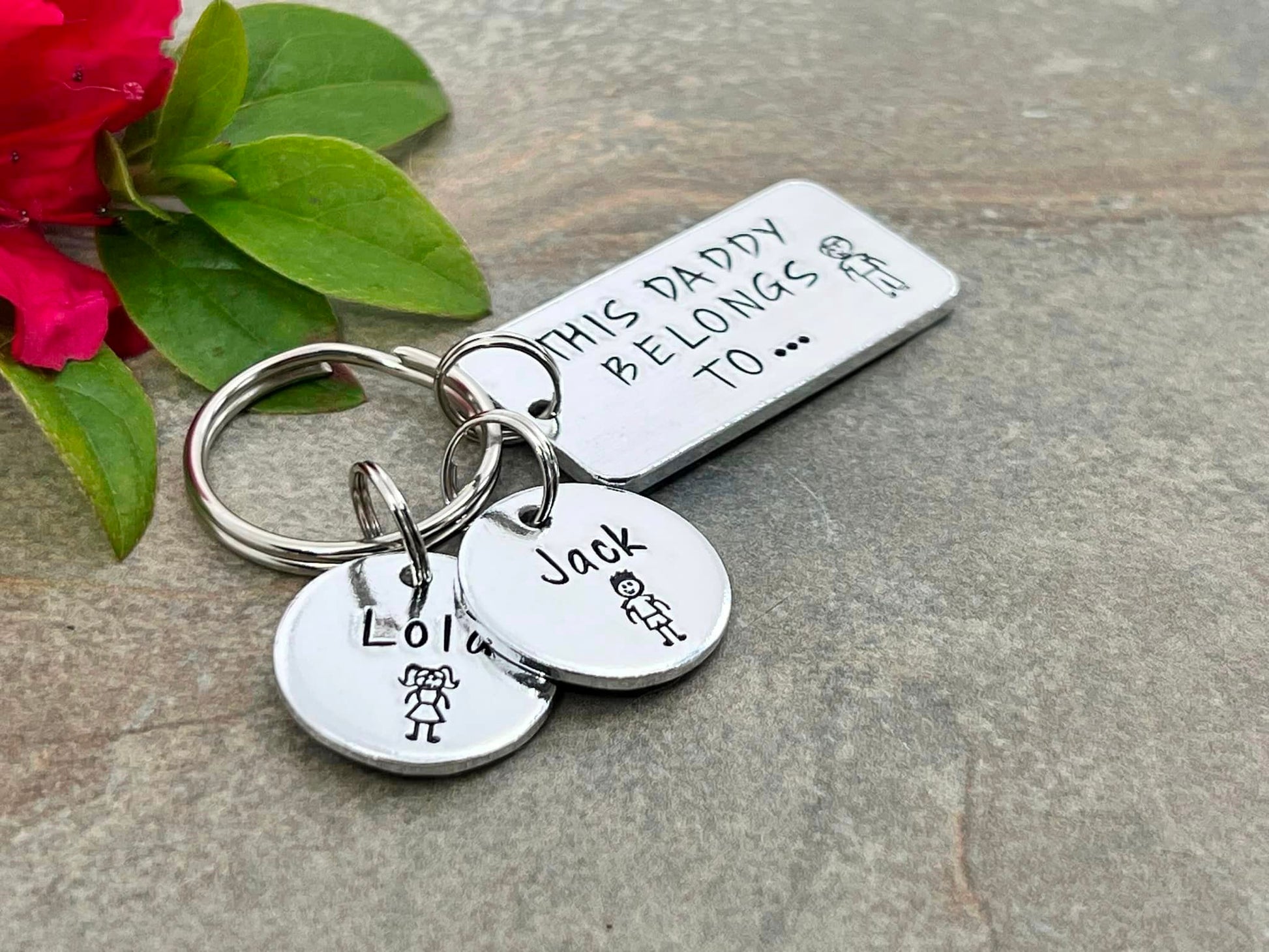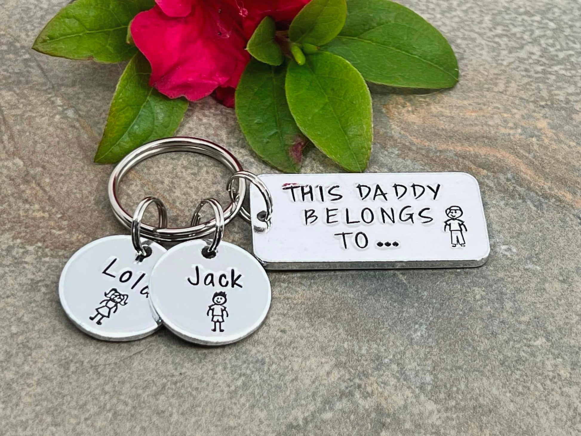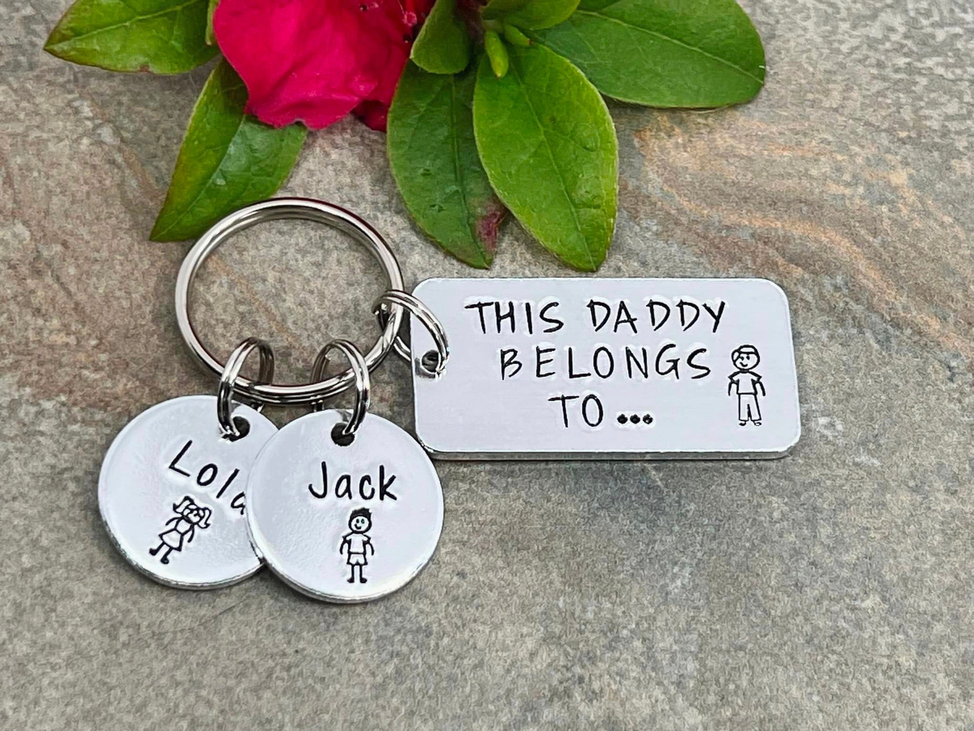 Hand stamped 'This Daddy belongs to' personalised keyring makes an ideal gift perfect for Father's Day.