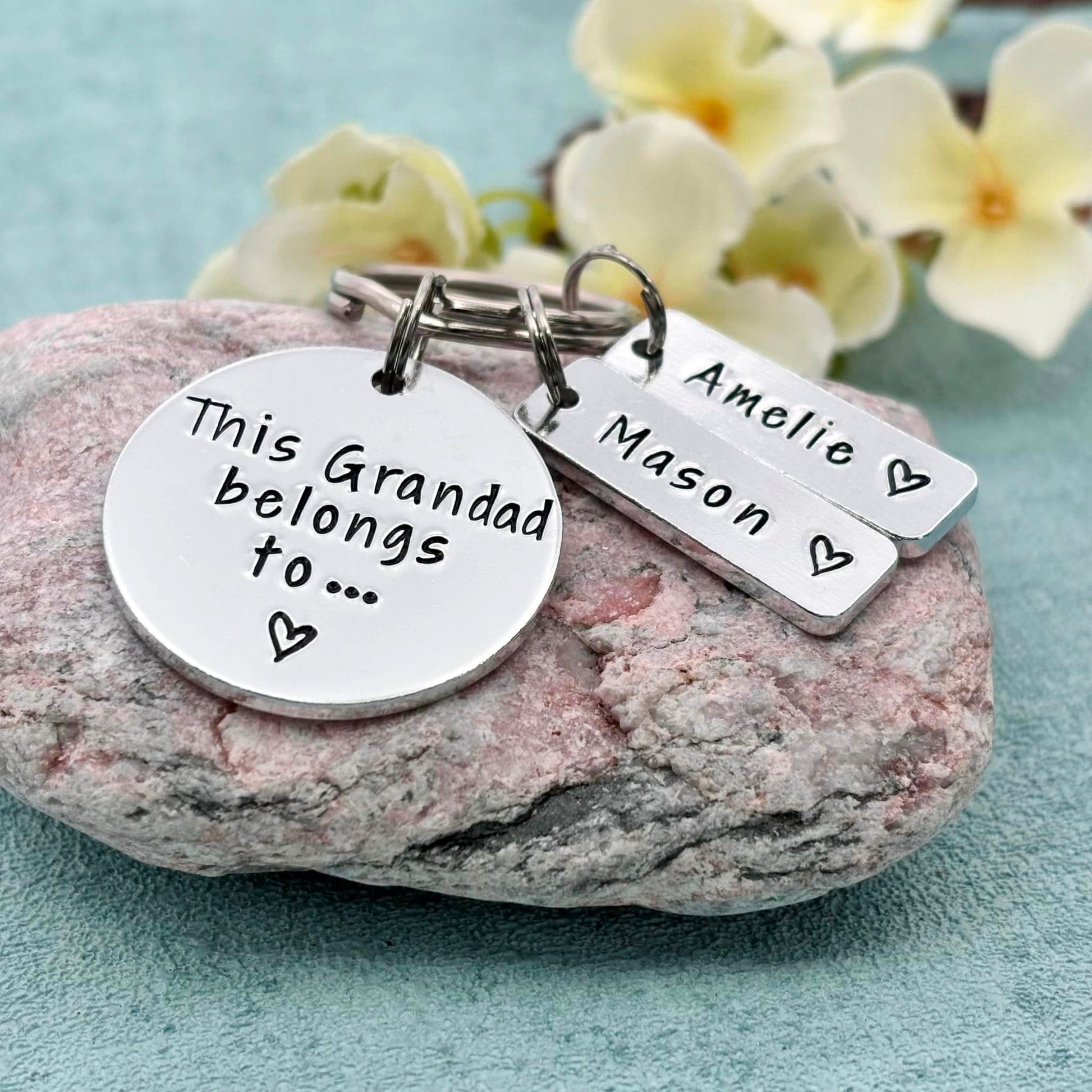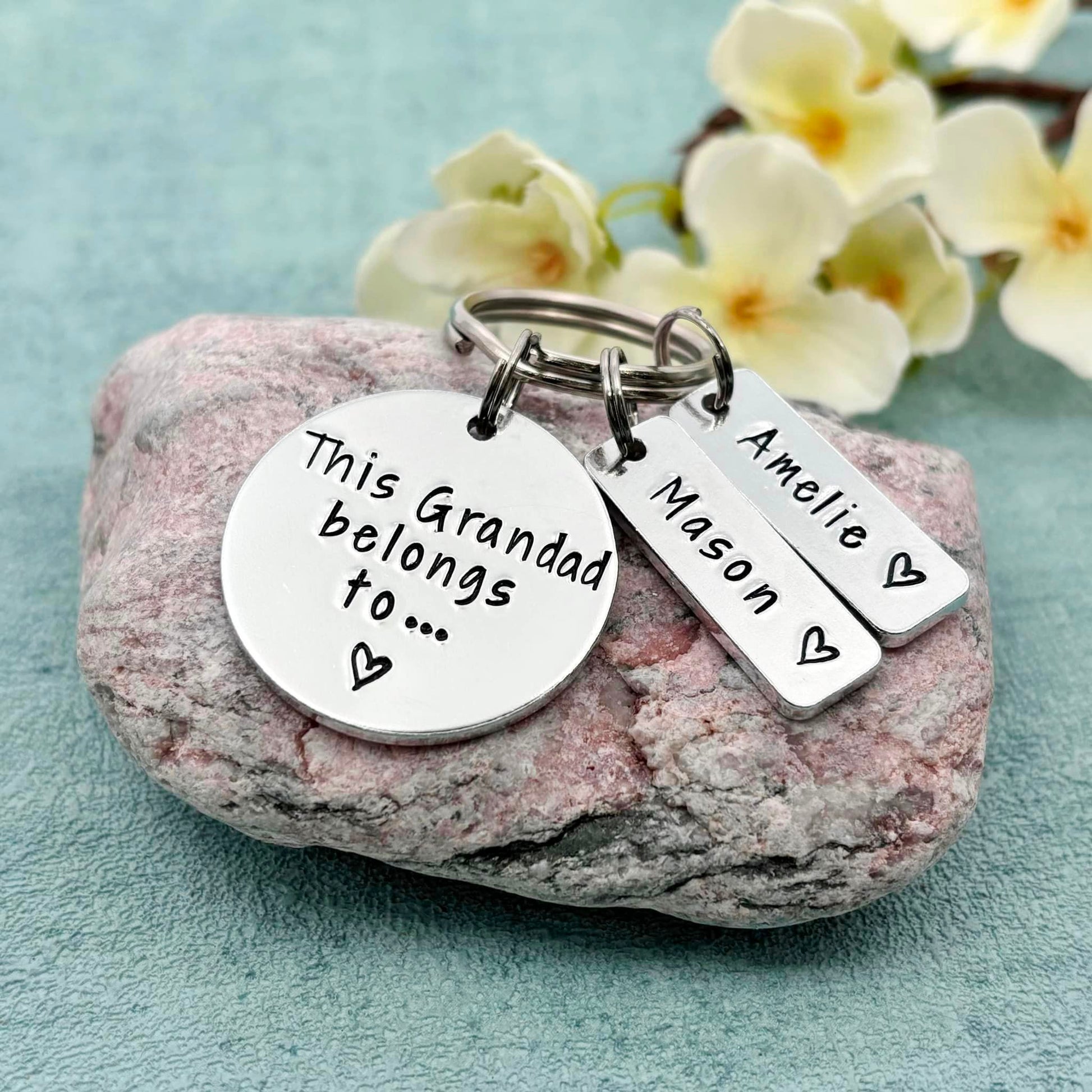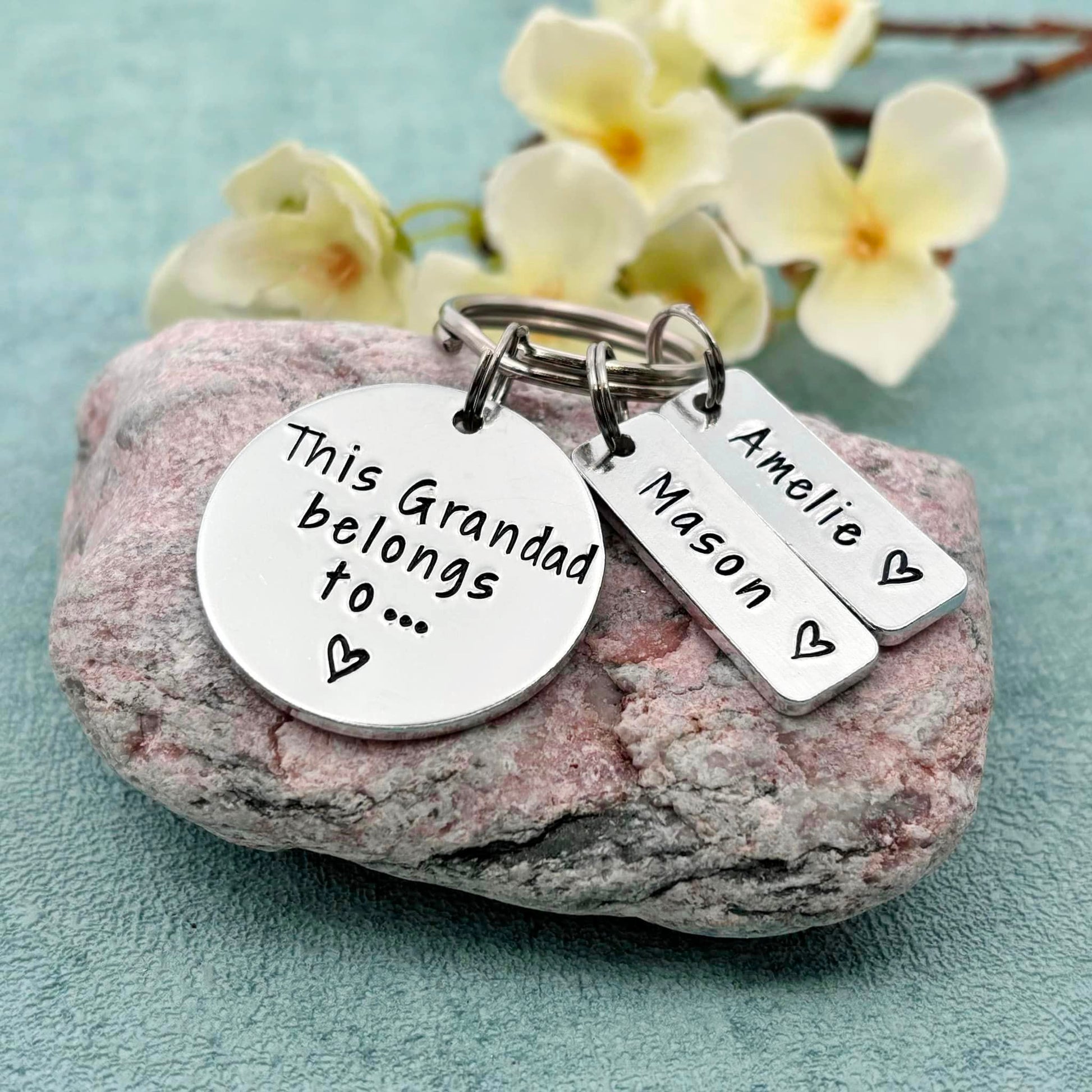 Hand stamped 'This Grandad belongs to' keyring makes an ideal personalised gift perfect for Father's Day.