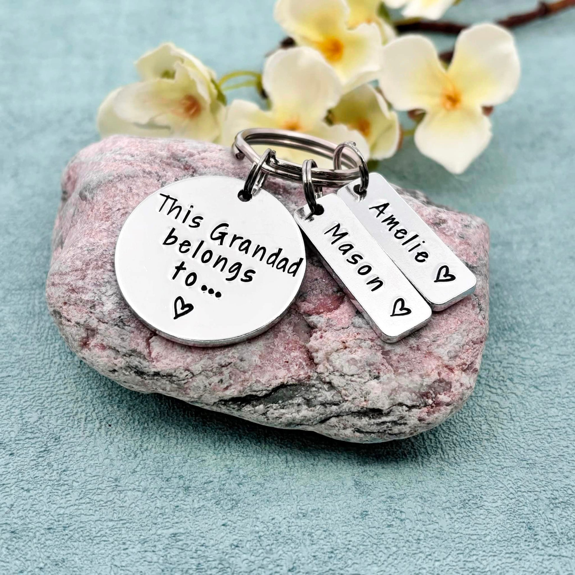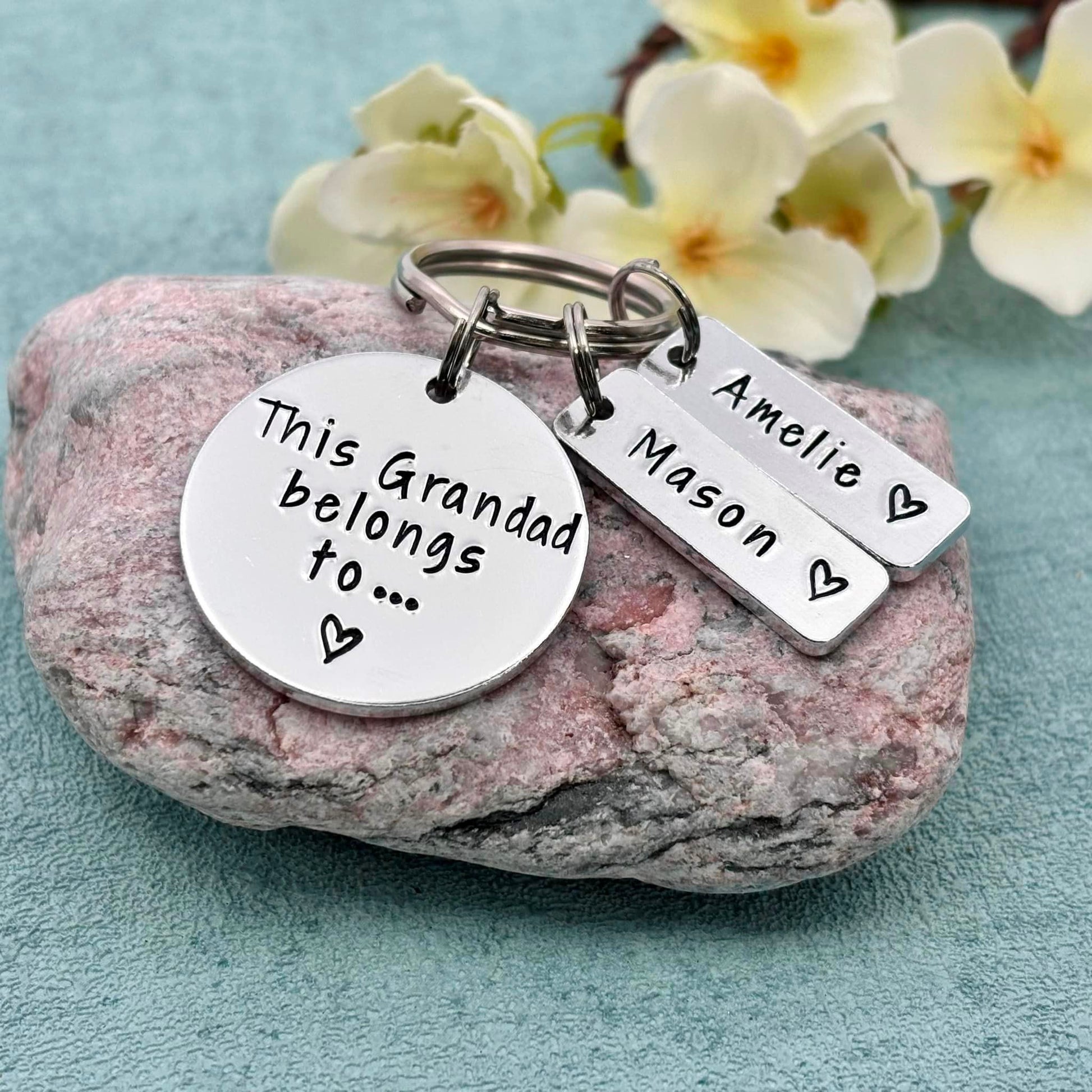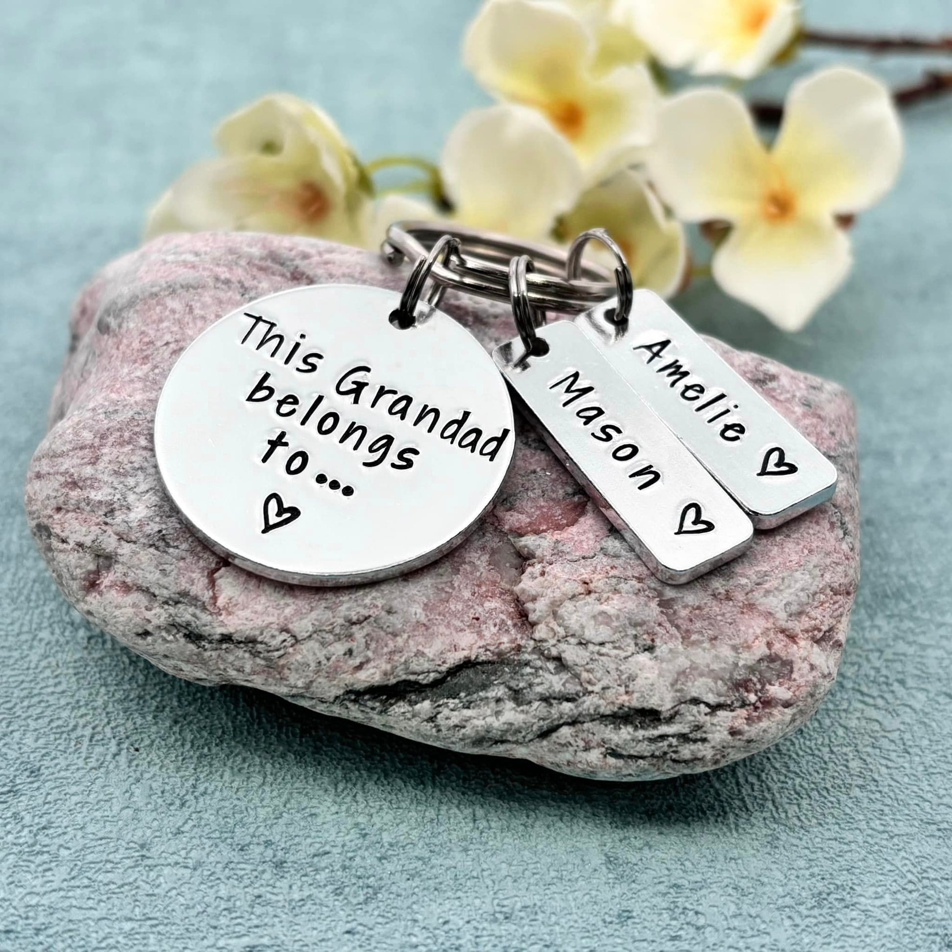 Hand stamped 'This Grandad belongs to' keyring makes an ideal personalised gift perfect for Father's Day.