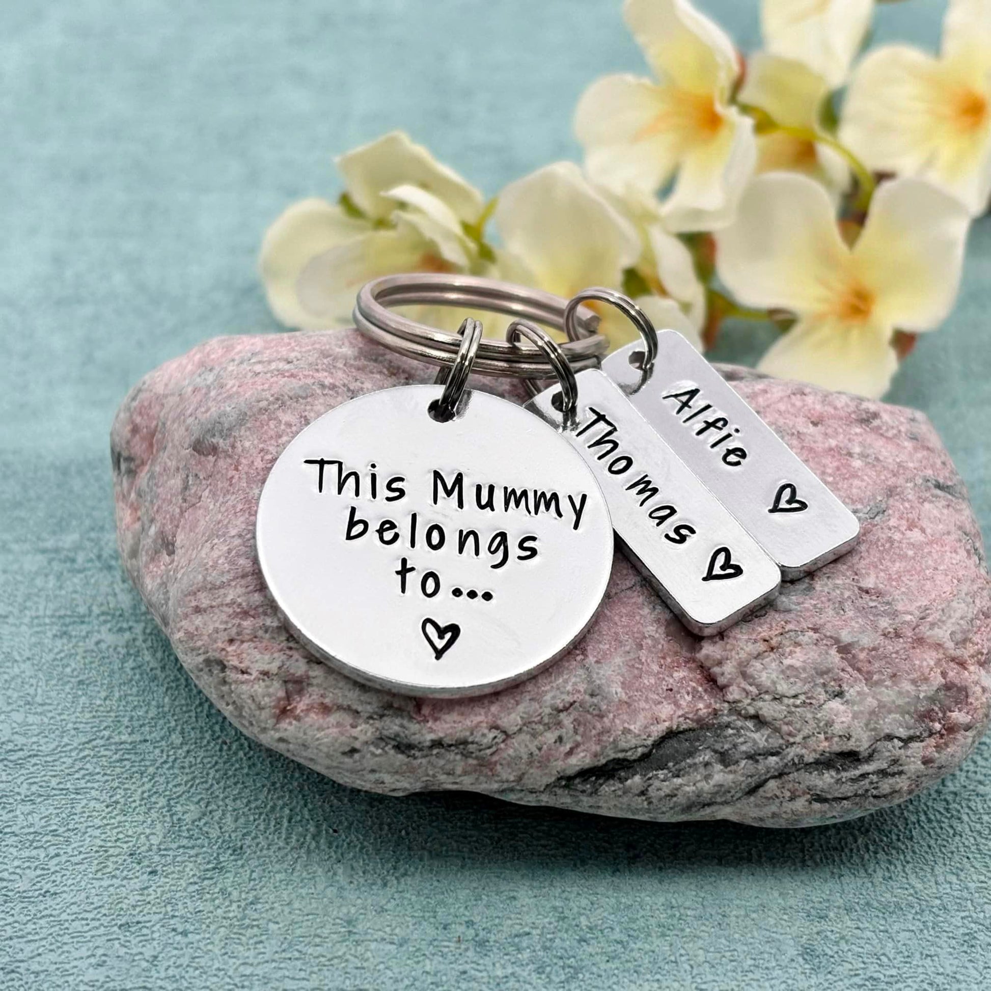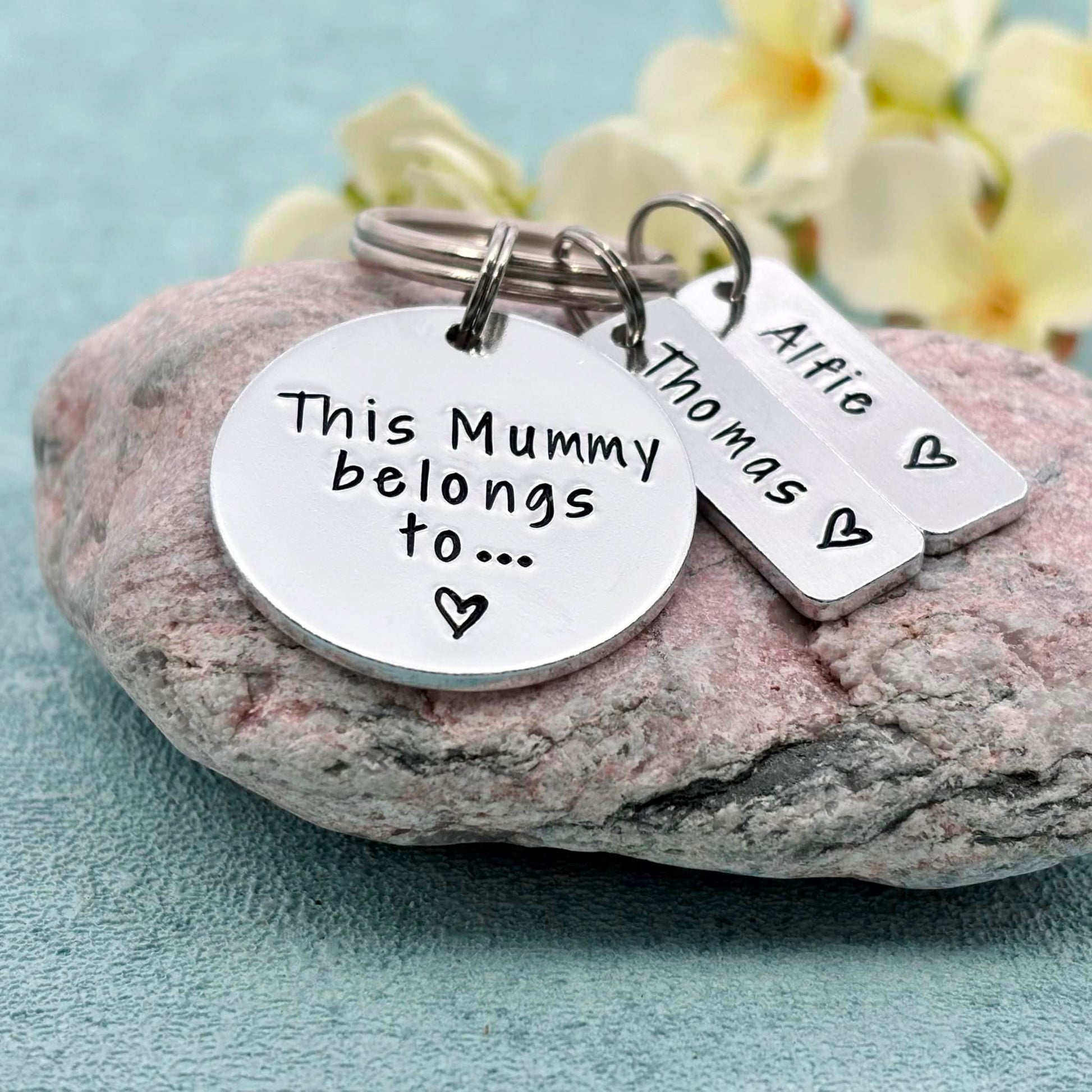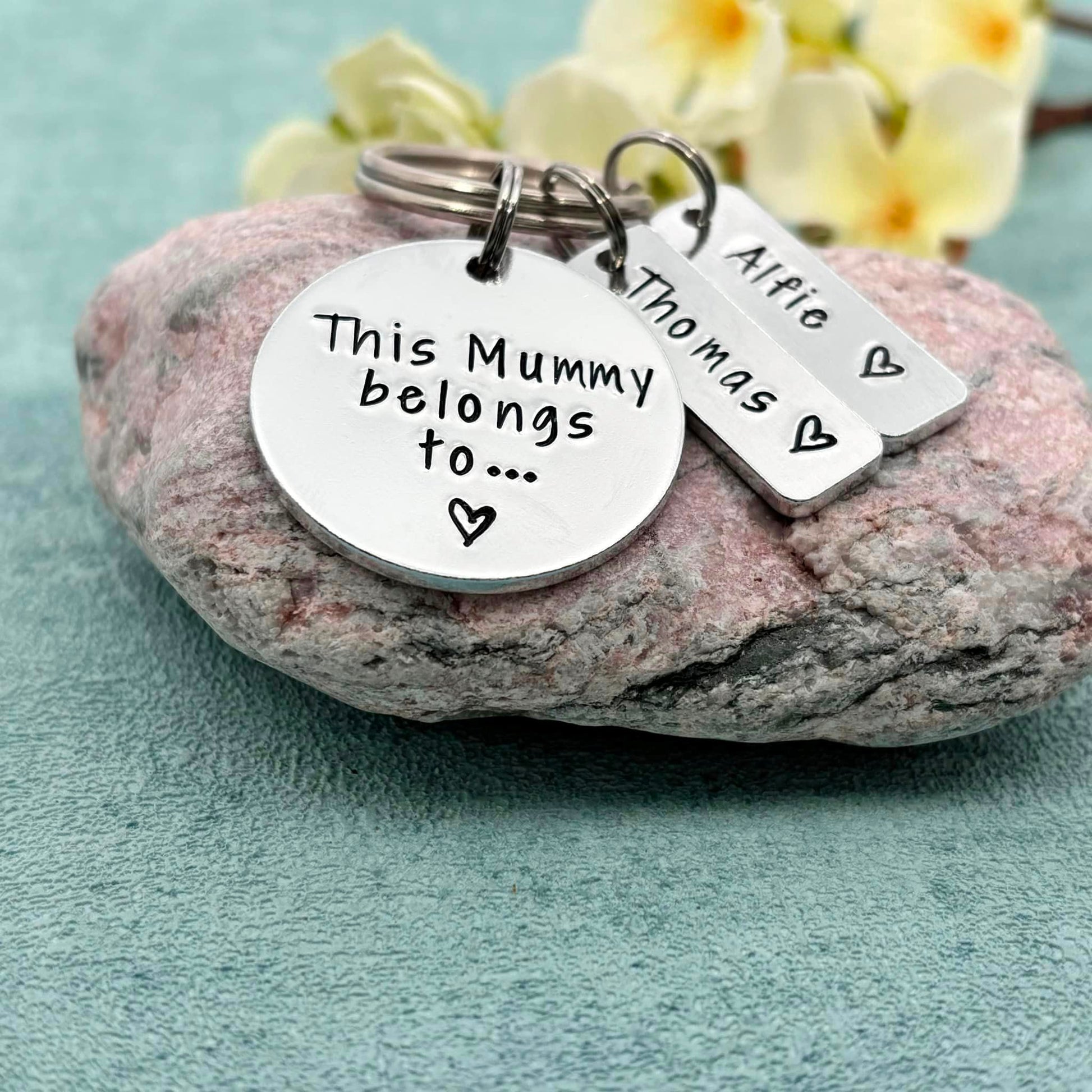 Hand stamped 'This Mummy belongs to...' keyring. Ideal Mother's Day gift.