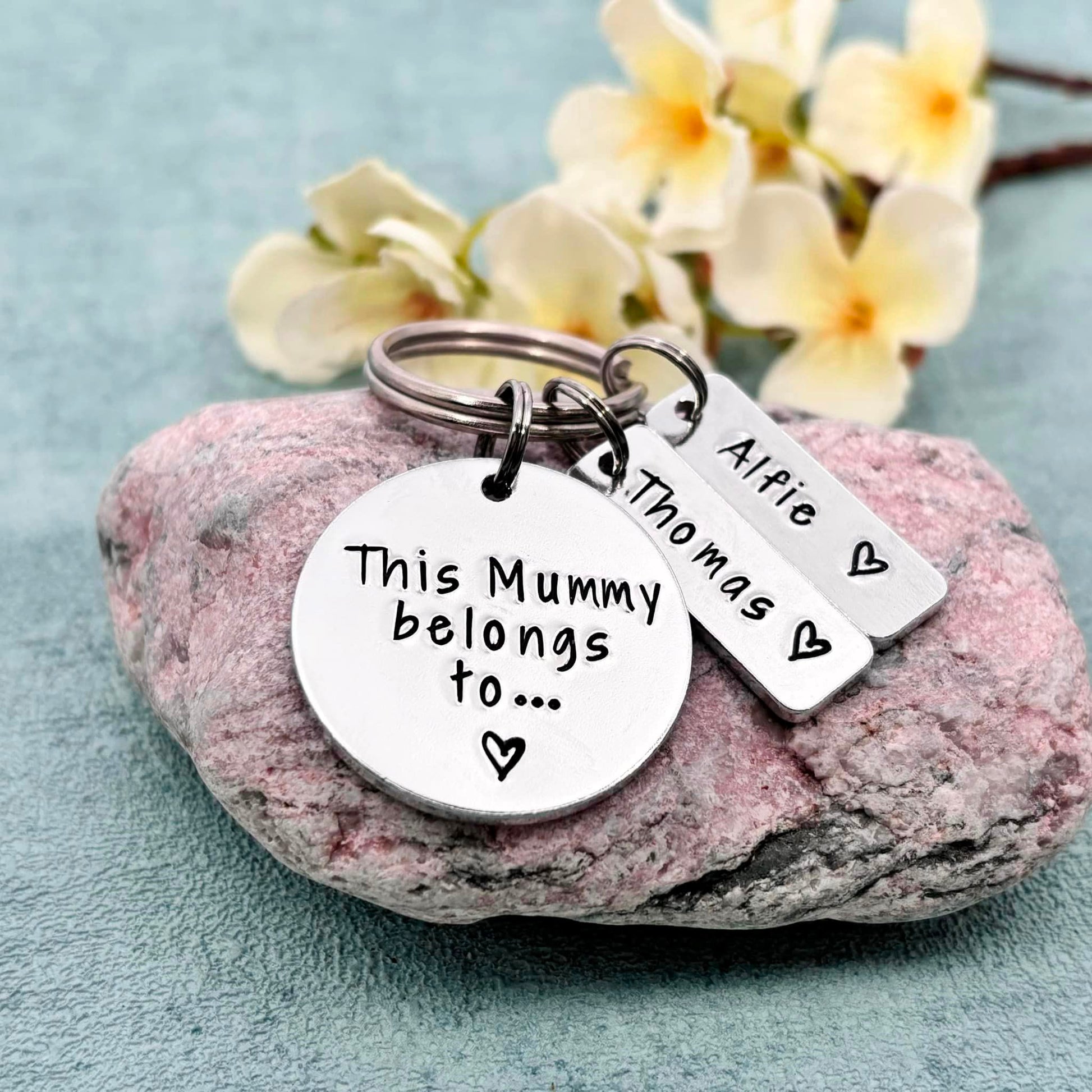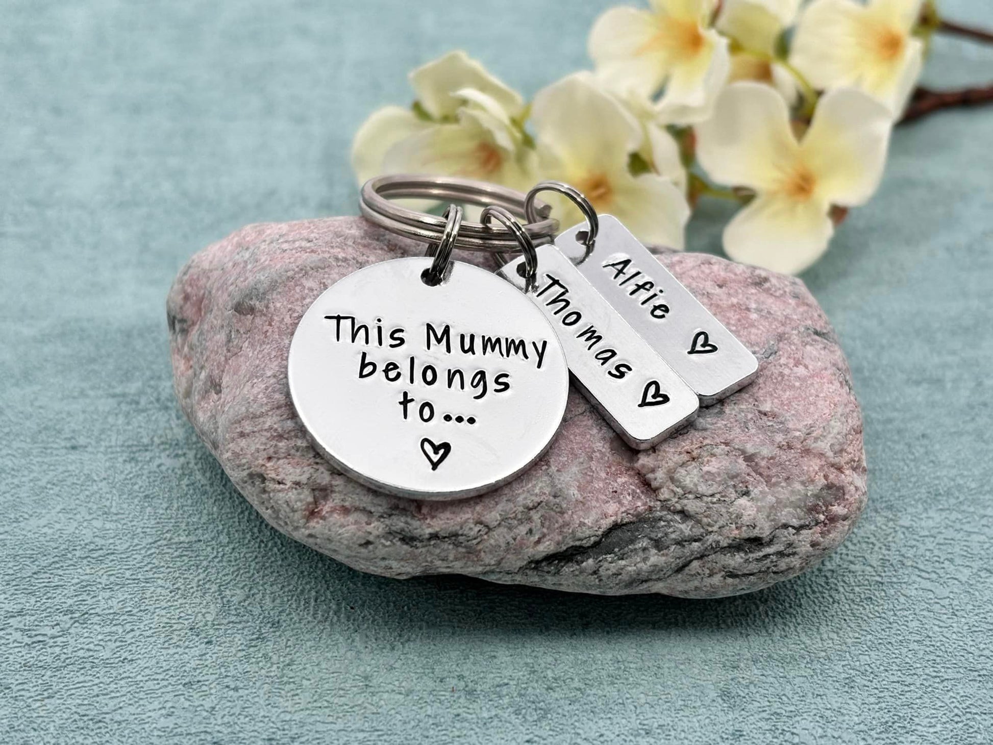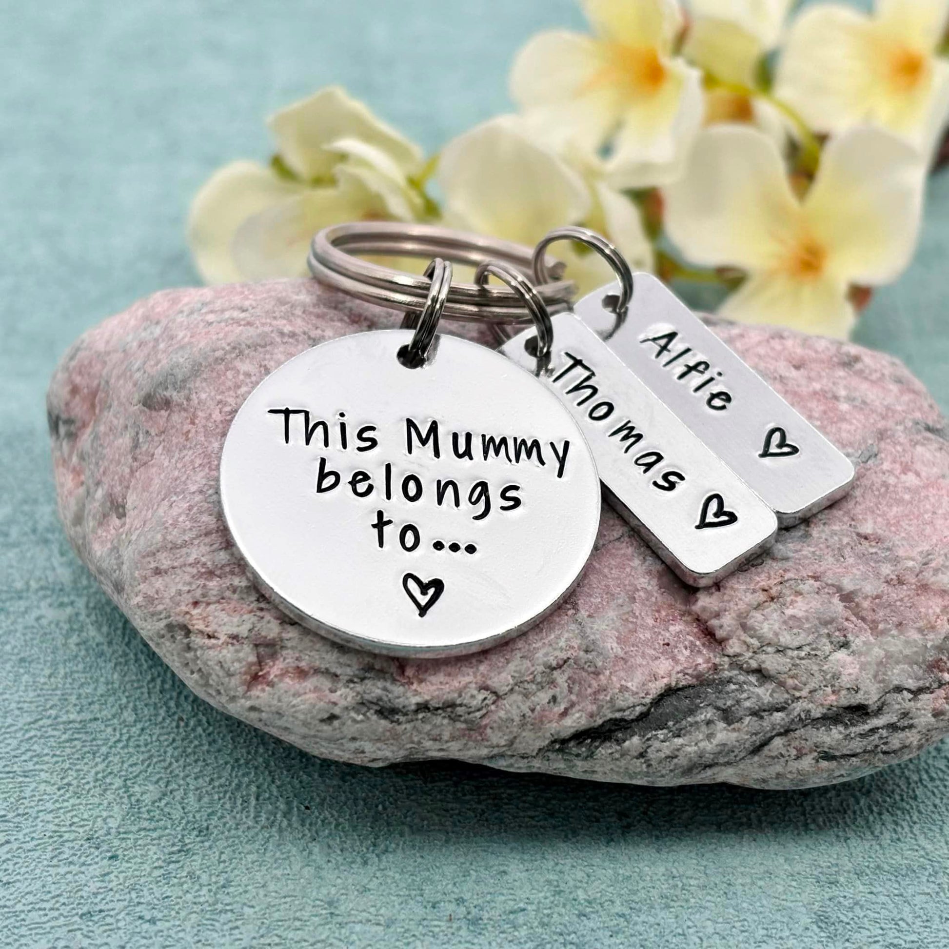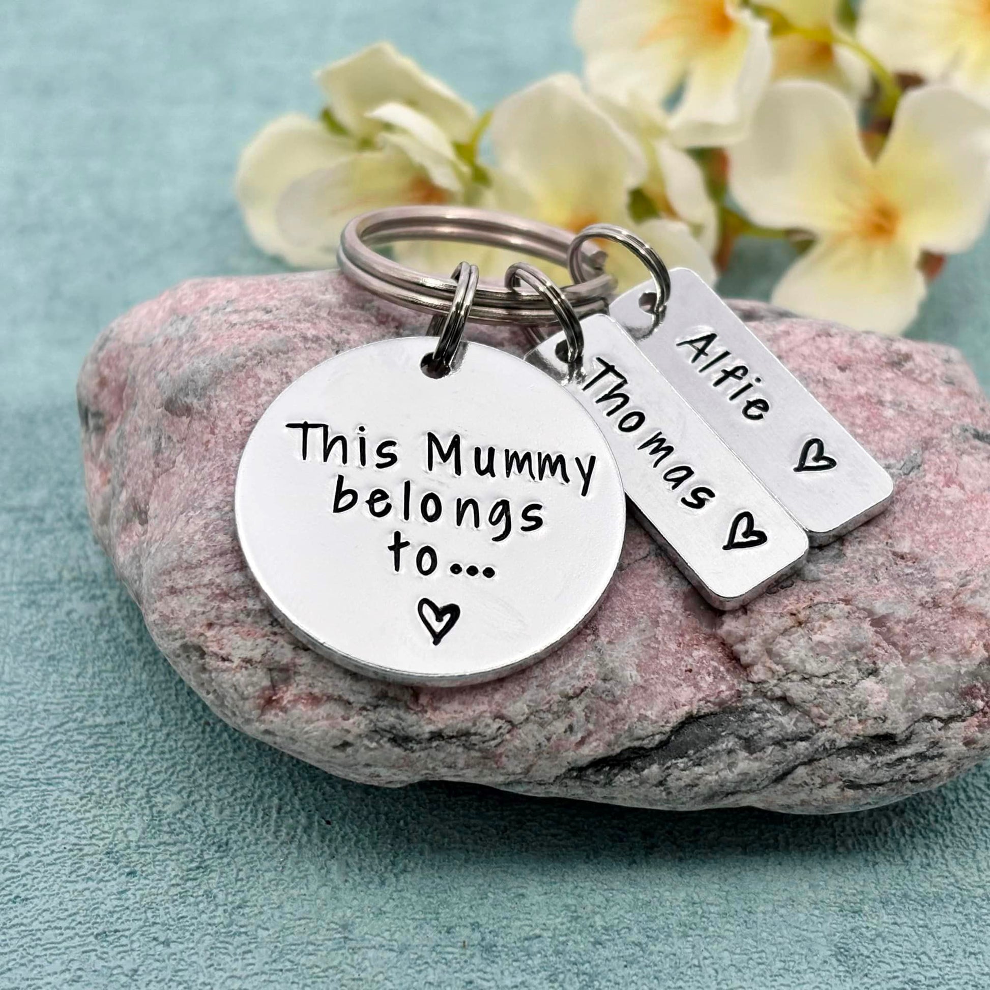 Hand stamped 'This Mummy belongs to...' keyring. Ideal Mother's Day gift.