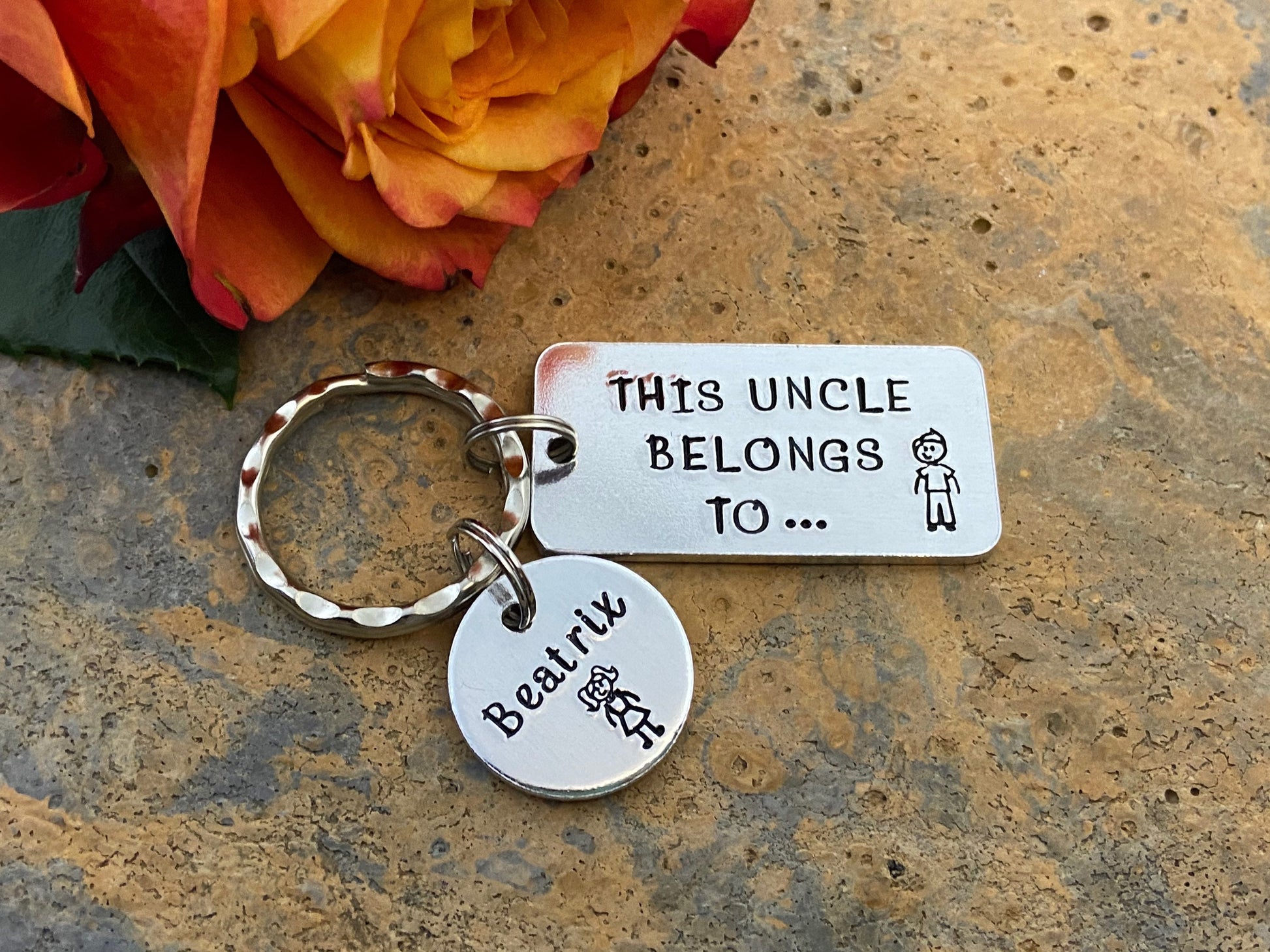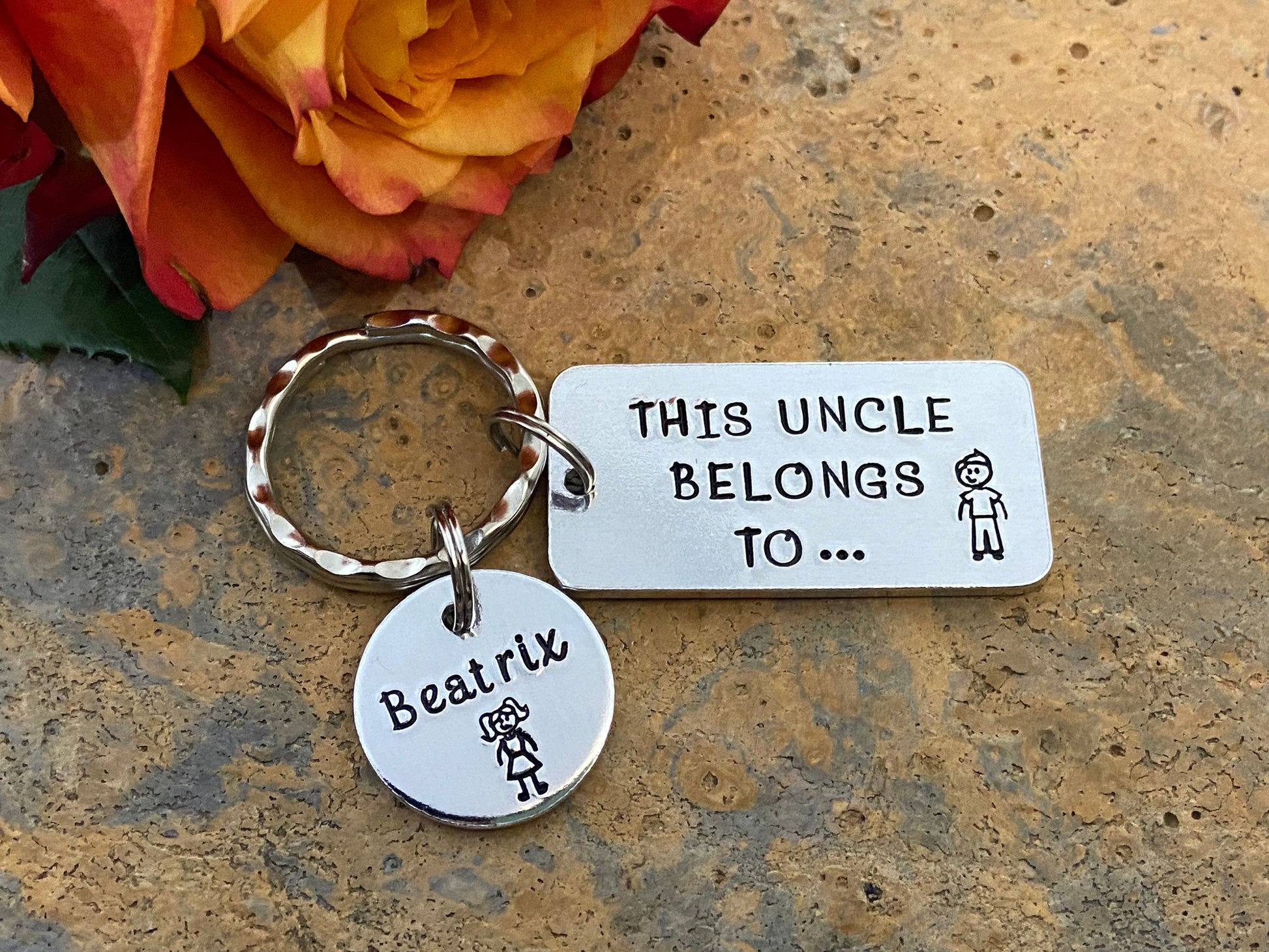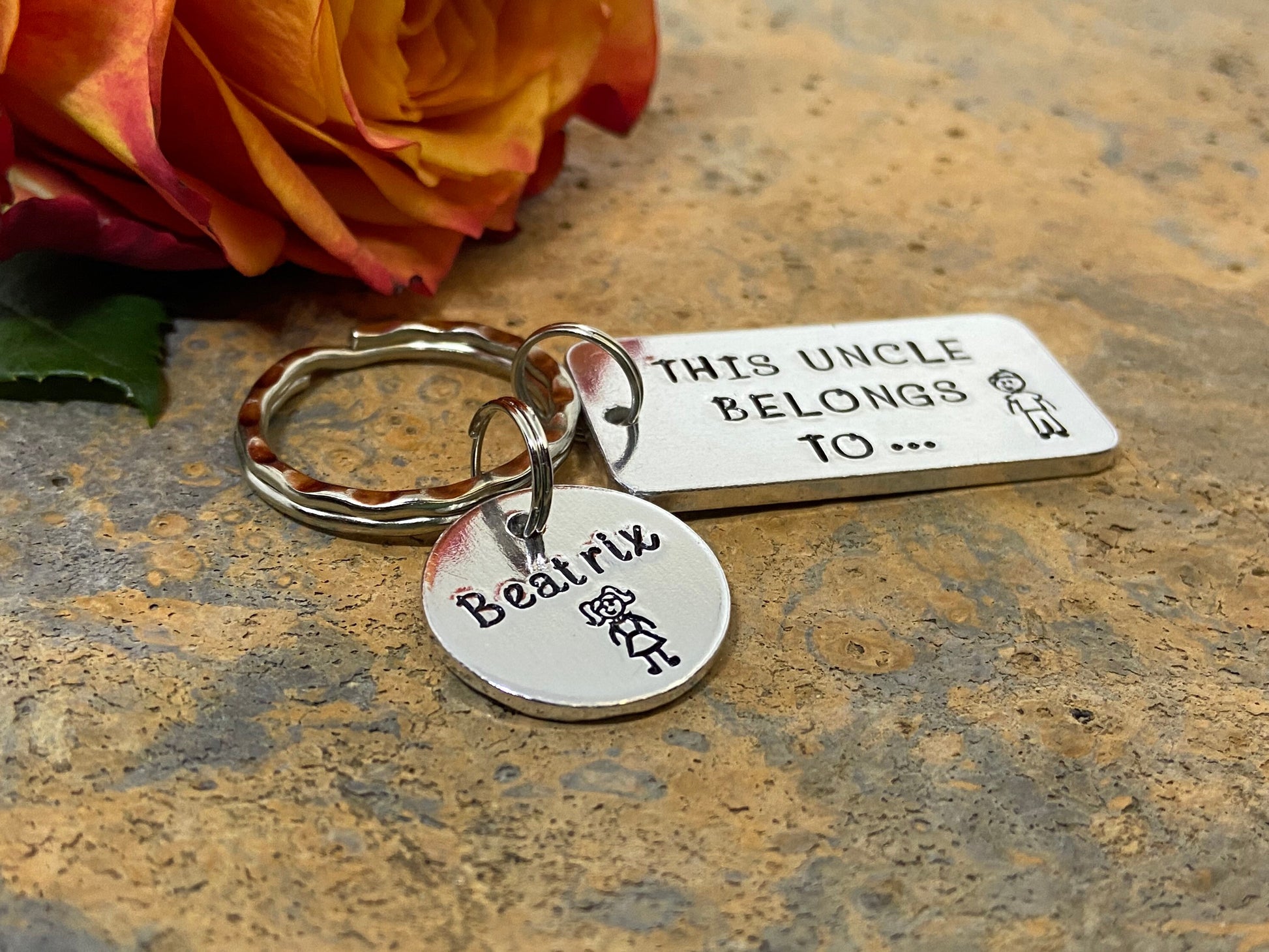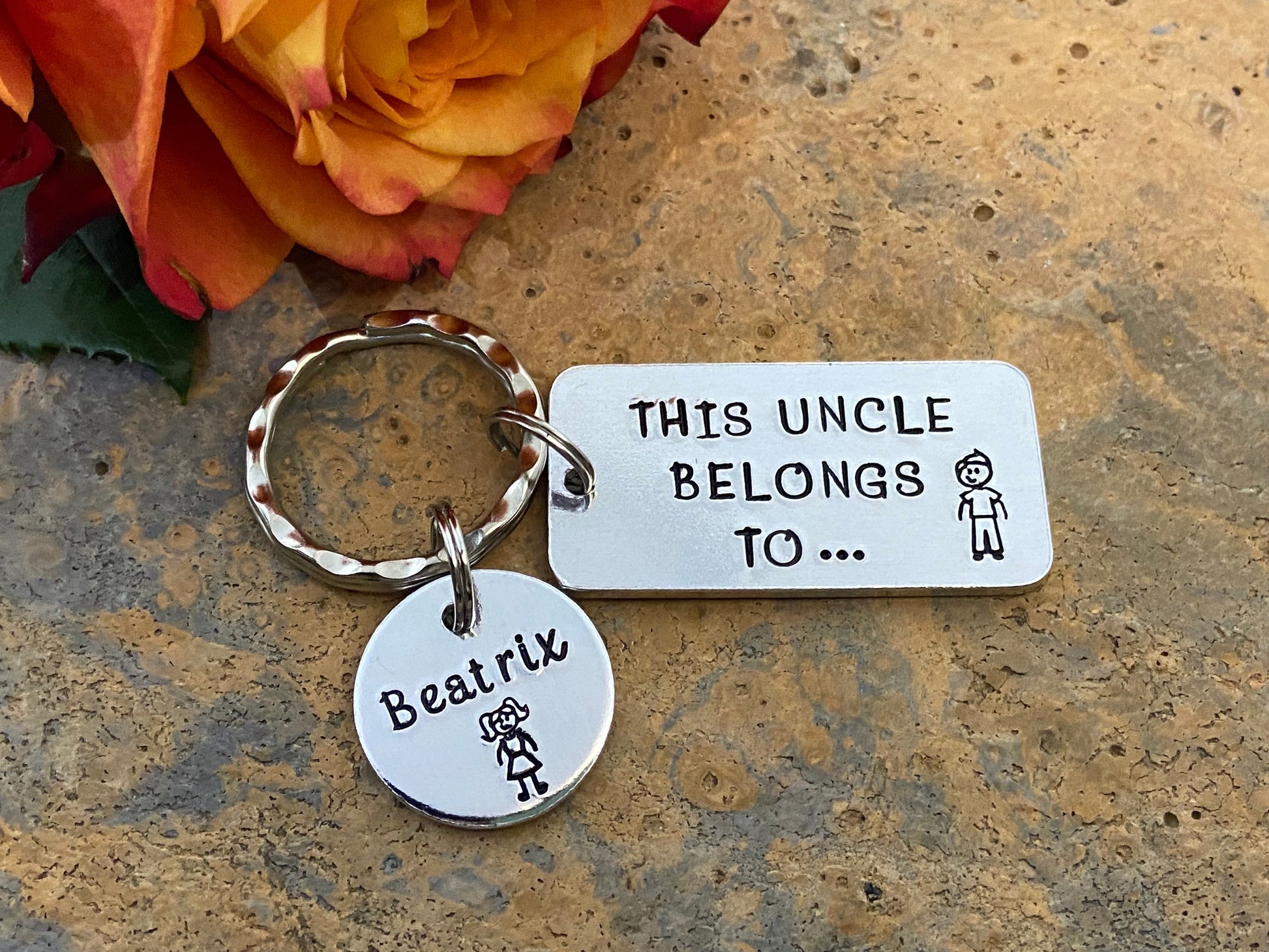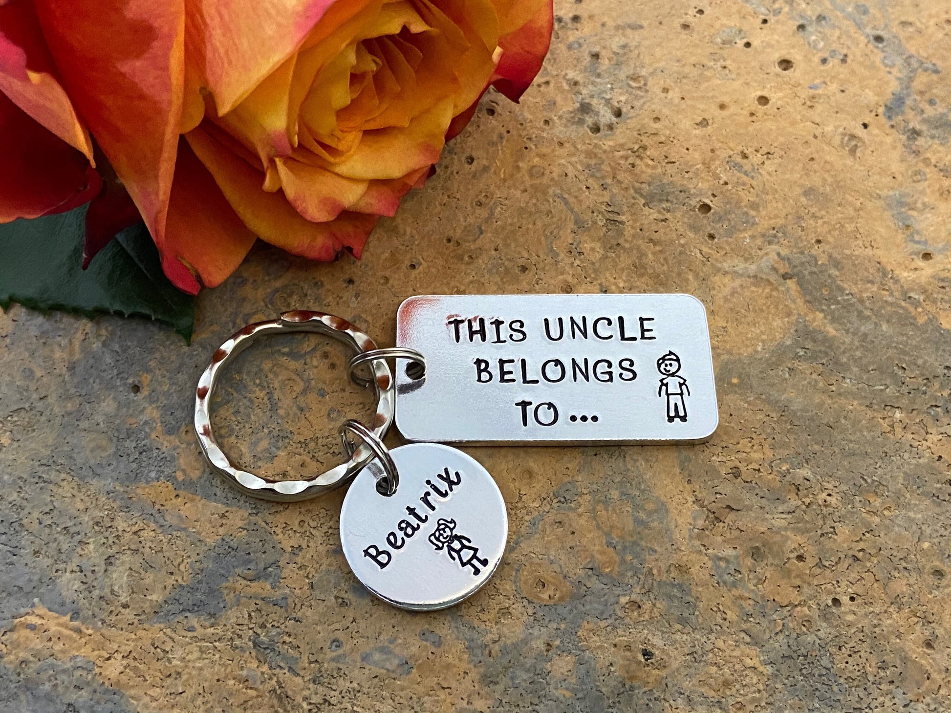 Hand stamped 'This Uncle belongs to...' personalised keyring makes an ideal gift for every uncle.